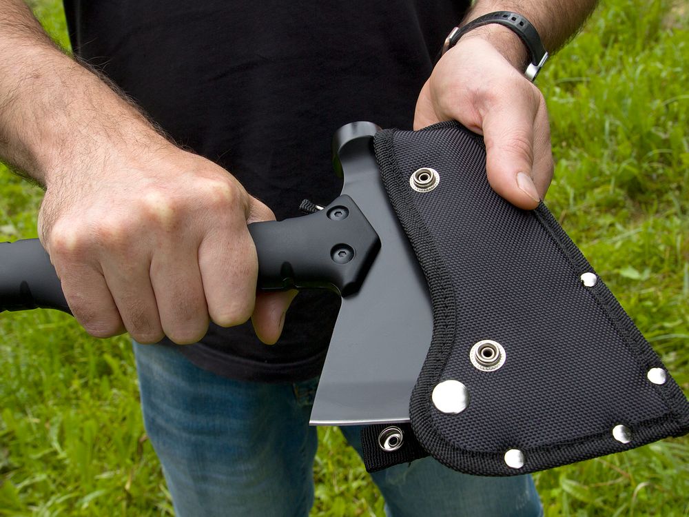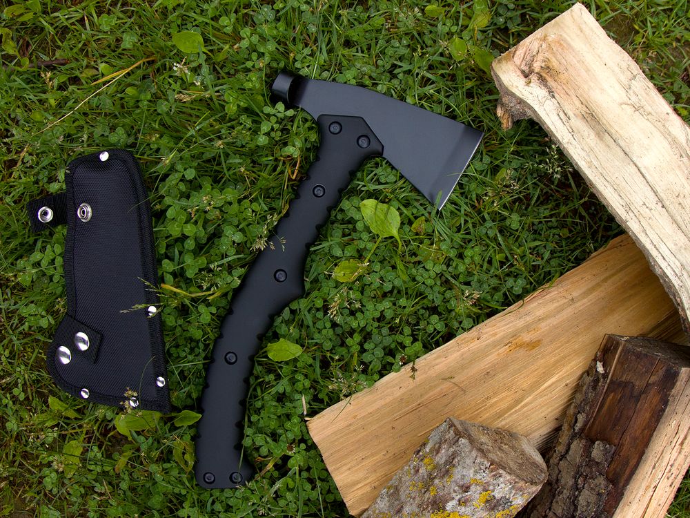 Туристический топор с молотком на обухе поможет нарубить дрова, расчистить место для стоянки, подготовить кострище и поставить лагерь.