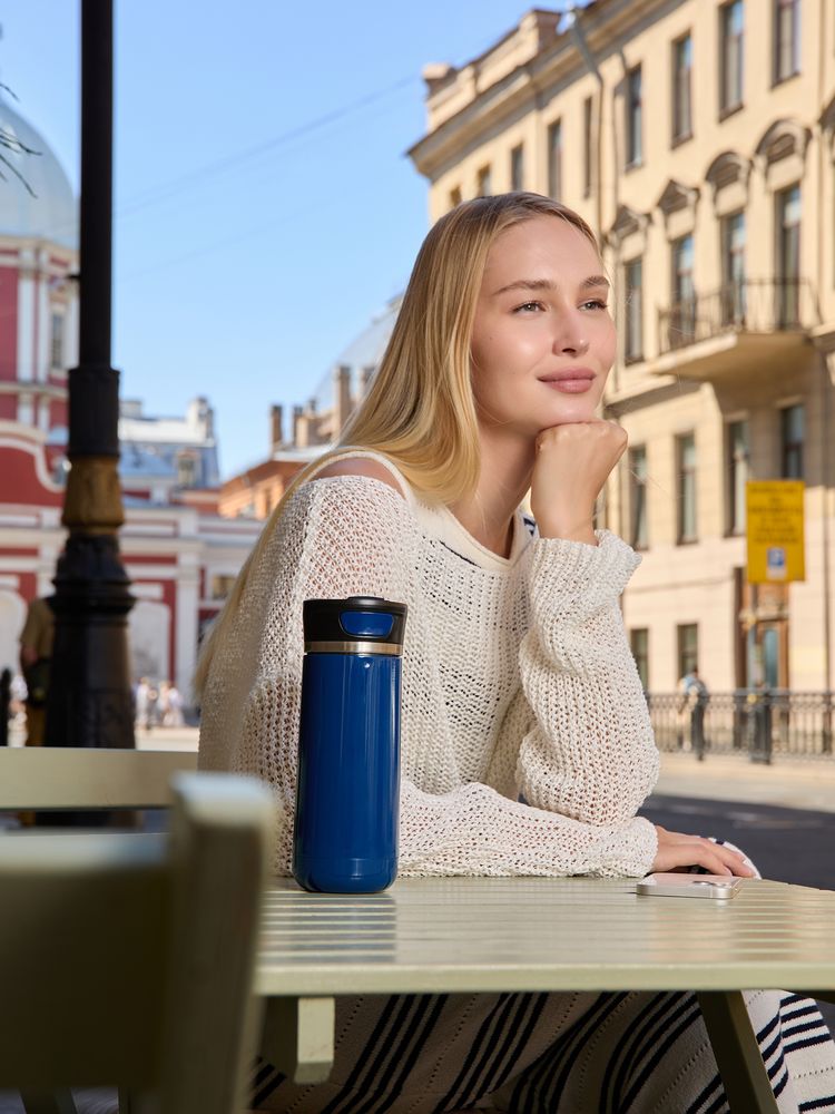 - Специальная система открывания клапана JustPushTheButton: чтобы открыть клапан для питья, нужно нажать боковую кнопку, чтобы закрыть, нужно нажать кнопку сверху крышки
