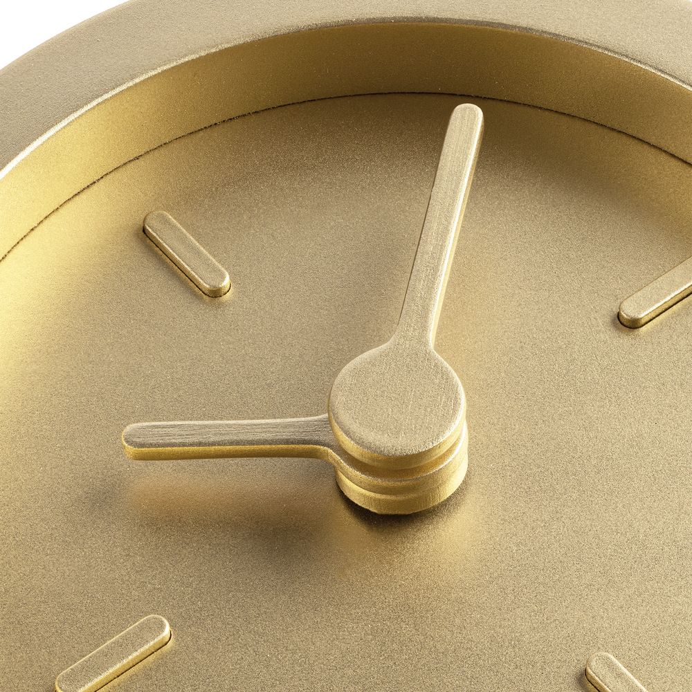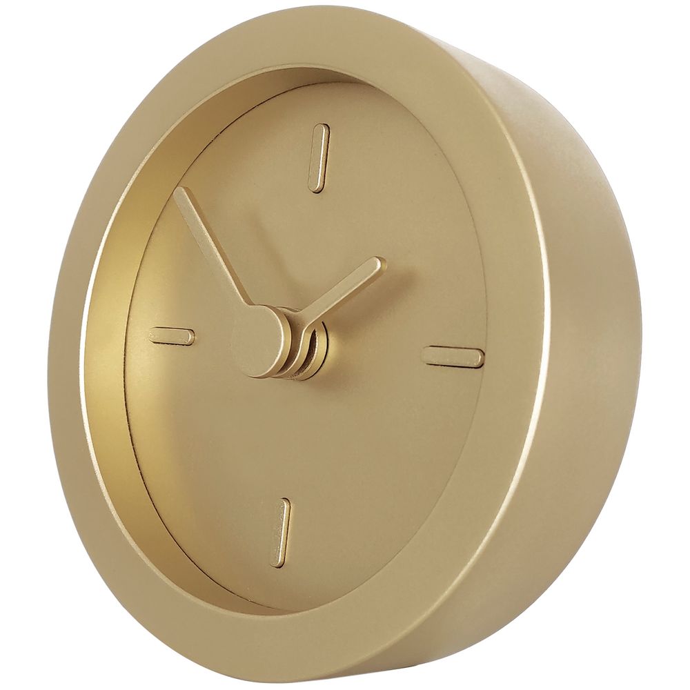 Матовая поверхность стильных настольных часов Bronco XXS смягчает контрастность бликов и теней, оставляя теплый отблеск благородного металла, но при этом усиливает четкость восприятия циферблата, сохраняя функциональность устройства.