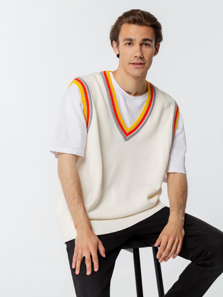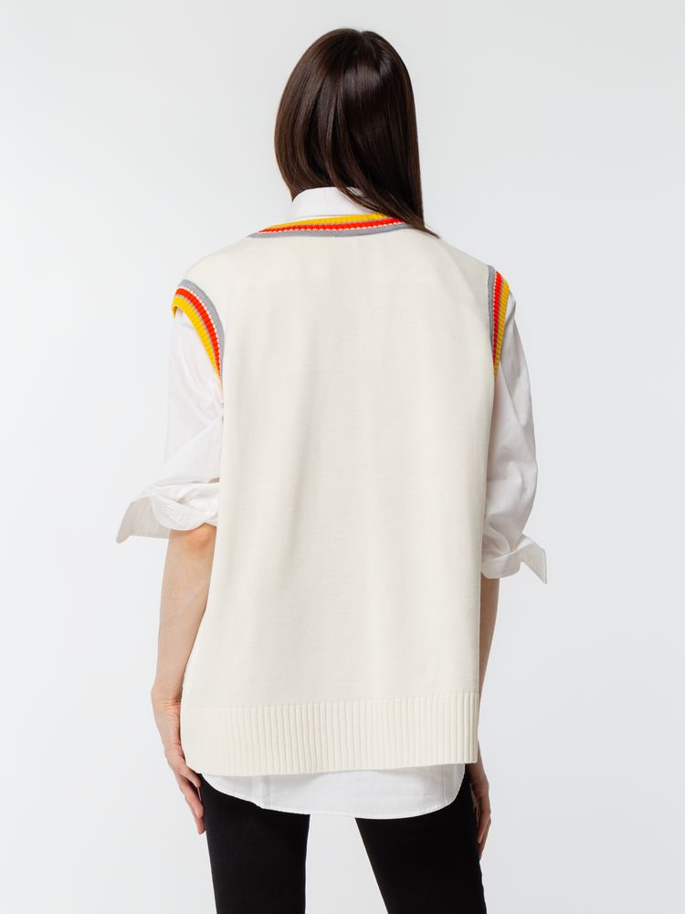 Оверсайз жилет с V-образным вырезом и цветной отделкой.