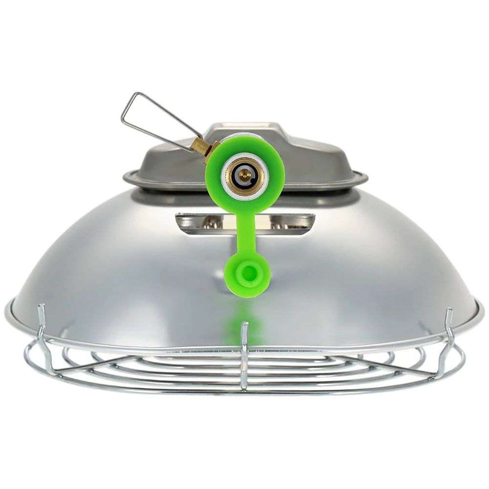 Высокопрочные пластины из медного и алюминиевого сплава держат температуру и равномерно распределяют тепло по всей поверхности. Нагревательный элемент покрыт защитной сеткой. После выключения необходимо закрыть клапан и остудить обогреватель до средней температуры.