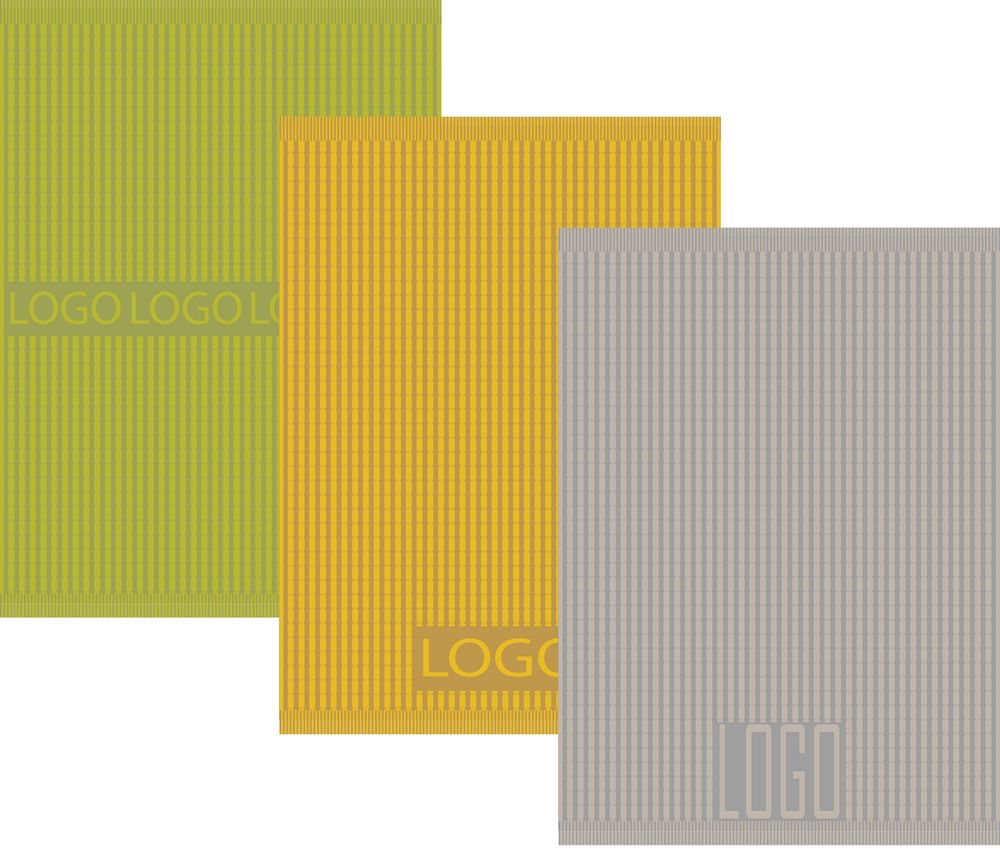 Плед с вывязанным логотипом и рельефным узором в фирменном цвете компании.