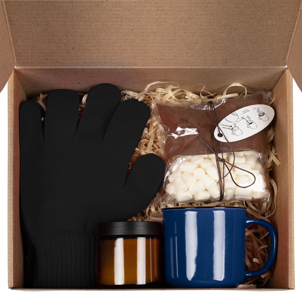 кружка - фаянс; коробка - микрогофрокартон; свеча - стекло, пластик; перчатки - акрил 100%
