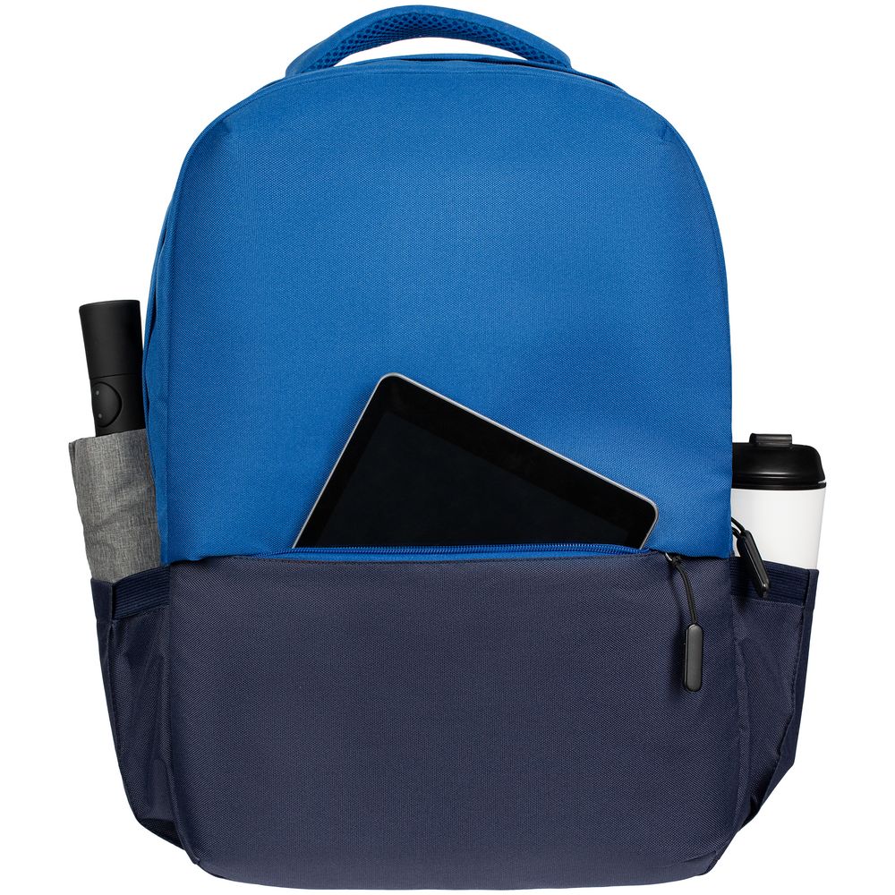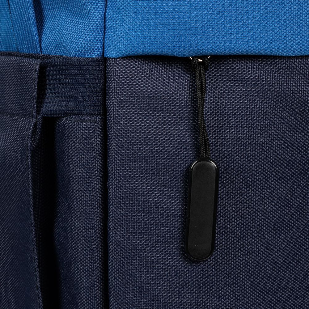Двухцветное исполнение с темным низом и более светлым верхом, с одной стороны, помогает рюкзаку дольше сохранять опрятный внешний вид, а с другой — позволяет активнее и контрастнее выделить логотип компании.