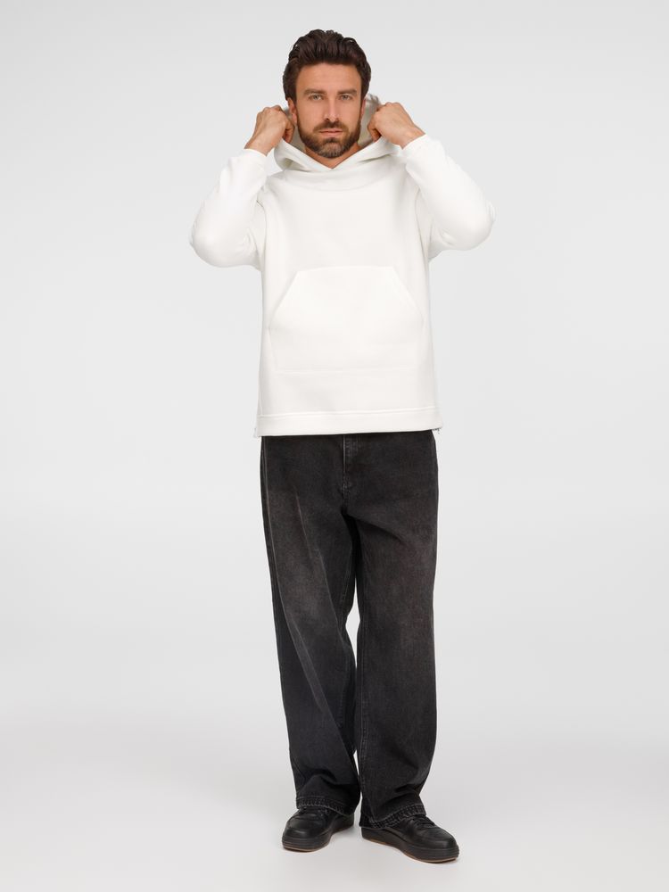 Худи унисекс удлиненного силуэта с молниями в боковых швах.