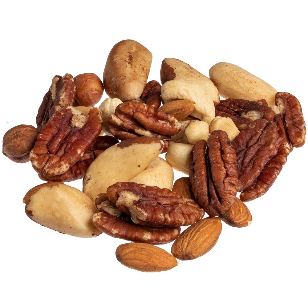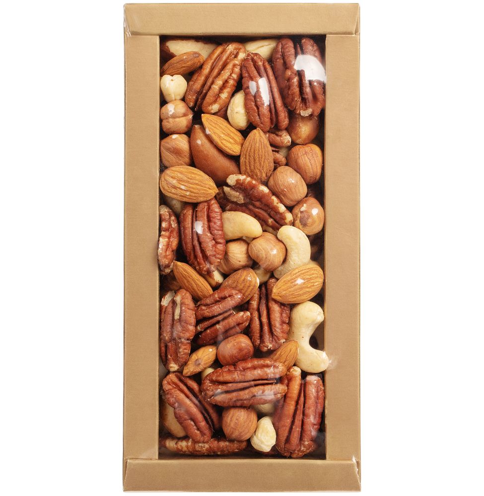 Состав: ядро бразильского ореха, орех пекан, ядро фундука, ядро миндаля, орех кешью.
