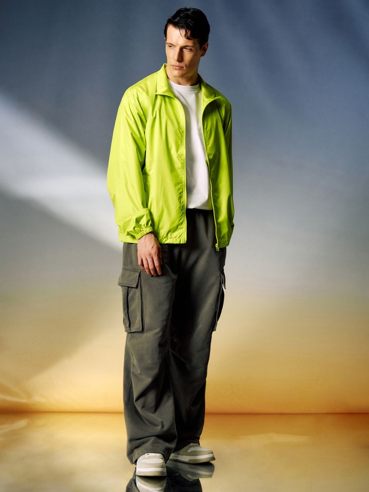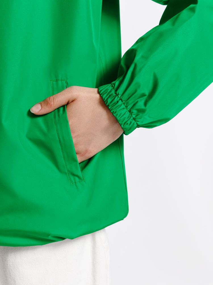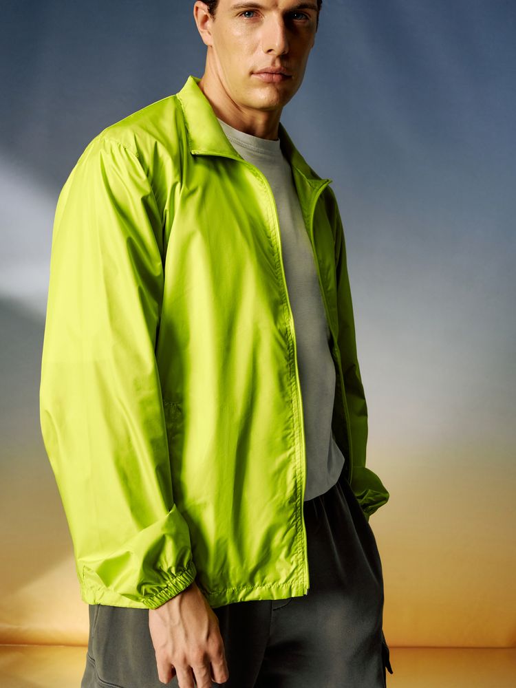 Тонкая гладкая ткань дюспо с притягательным матовым блеском почти бесшумна в использовании и пригодна для большого количества цветов печати. Качественный пошив ветровки добавляет ей презентабельности и гарантирует долгое использование, а яркий цвет привлекает внимание и не выгорает со временем.