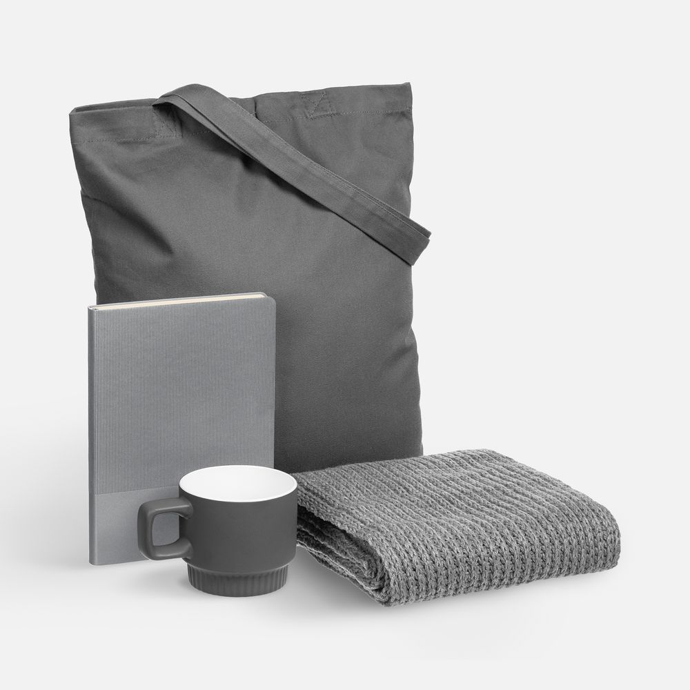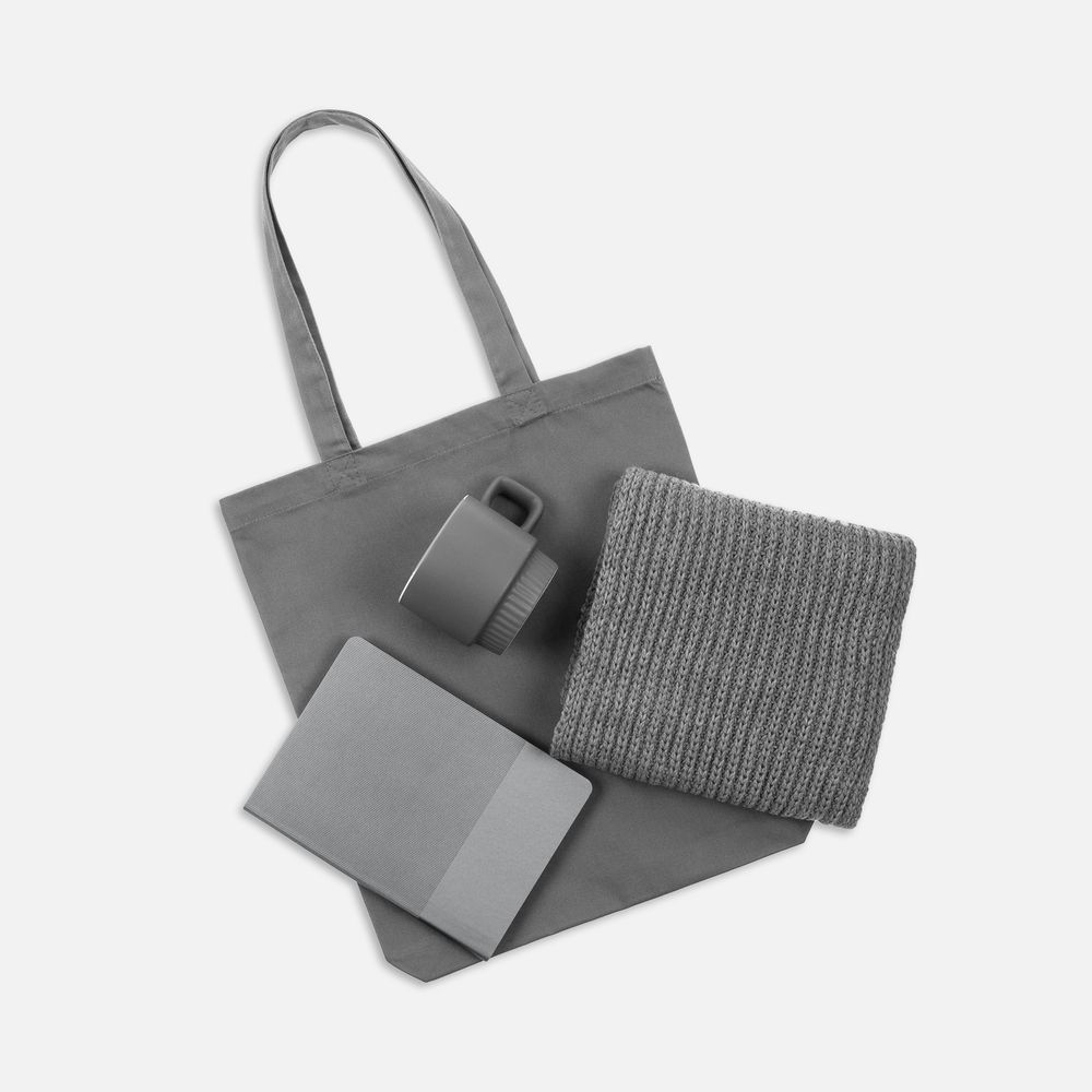 сумка - хлопок 100%; шарф - акрил 100%; ежедневник - искусственная кожа; кружка - каменная керамика