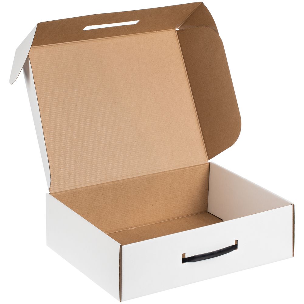 Самосборная коробка-шкатулка со вставной пластиковой ручкой.