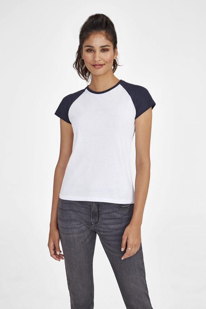 Кроенная футболка с рукавом реглан. Укрепляющая тесьма по вороту, край круглого ворота связан резинкой с эластаном.