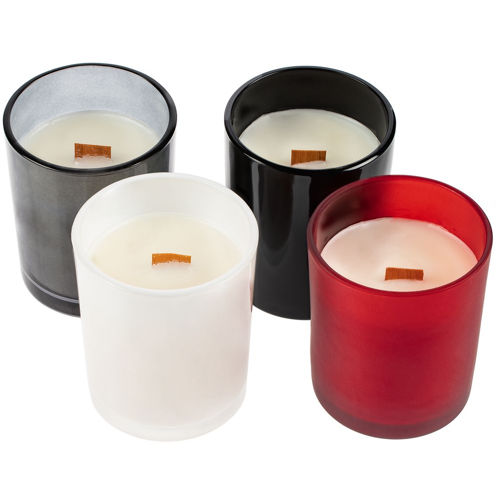 Свечи из натурального кокосового воска и парафина с фитилем из древесины вишни. Кокосовый воск производит наименьшее количество сажи относительно других типов воска и считается лучшим для изготовления свечей. А фитиль из вишневого дерева горит с приятным потрескиванием древесины, создавая неповторимую атмосферу.