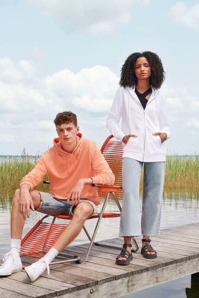 Базовое худи унисекс из органического хлопка и переработанного полиэстера.
