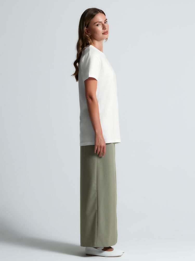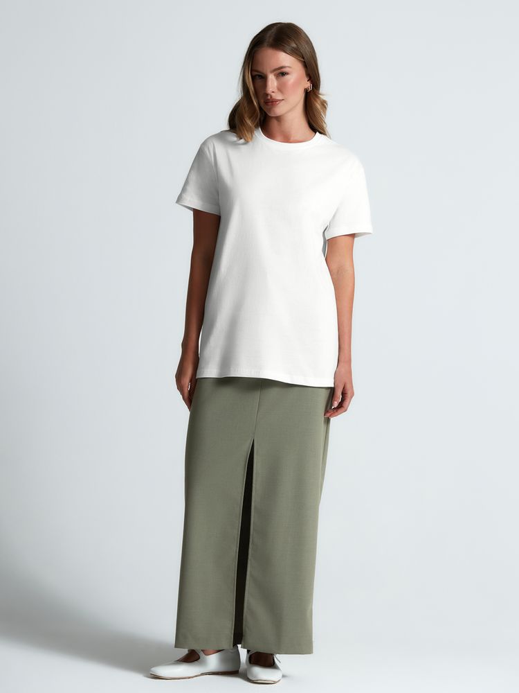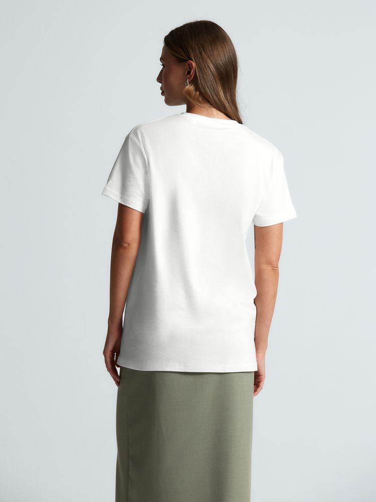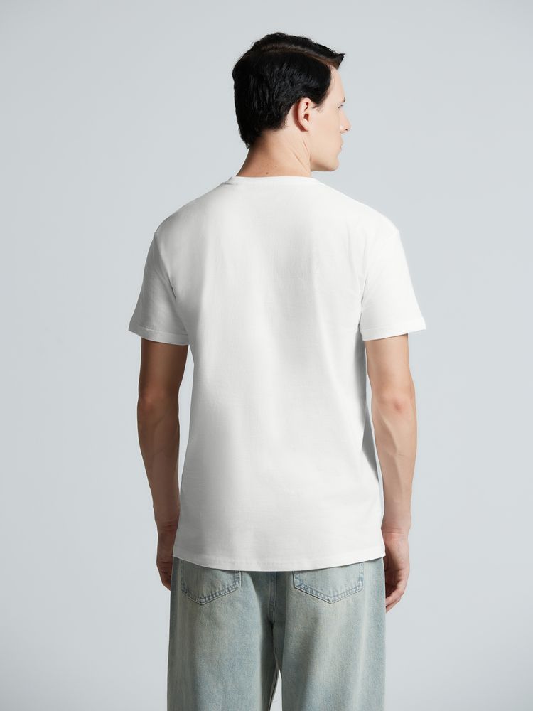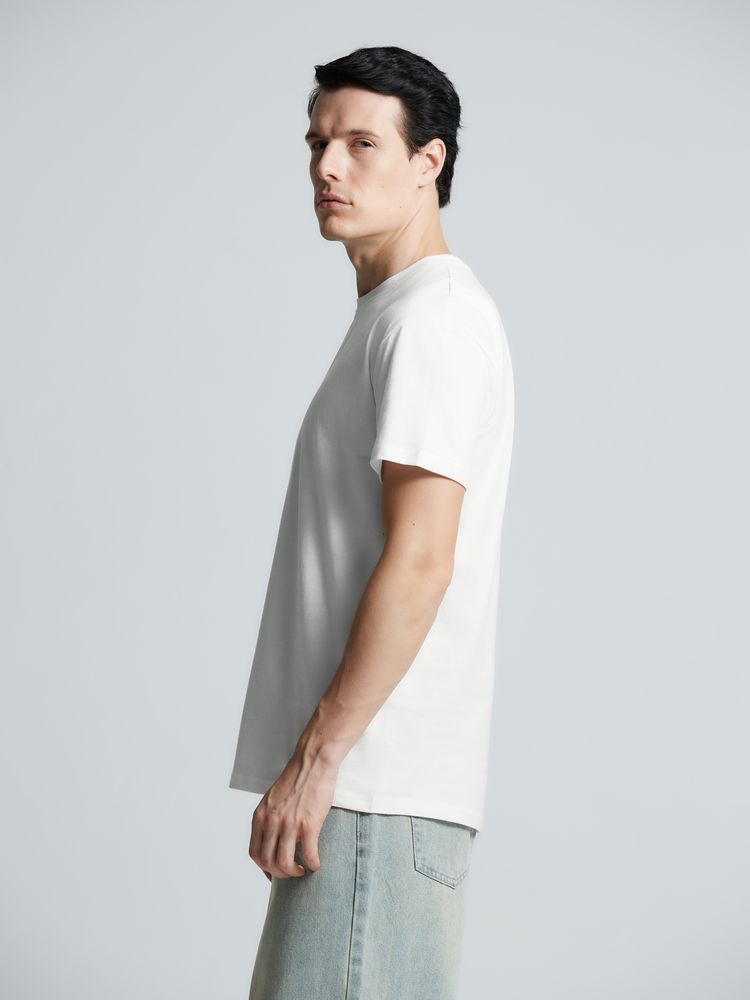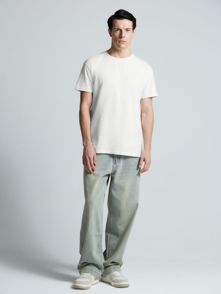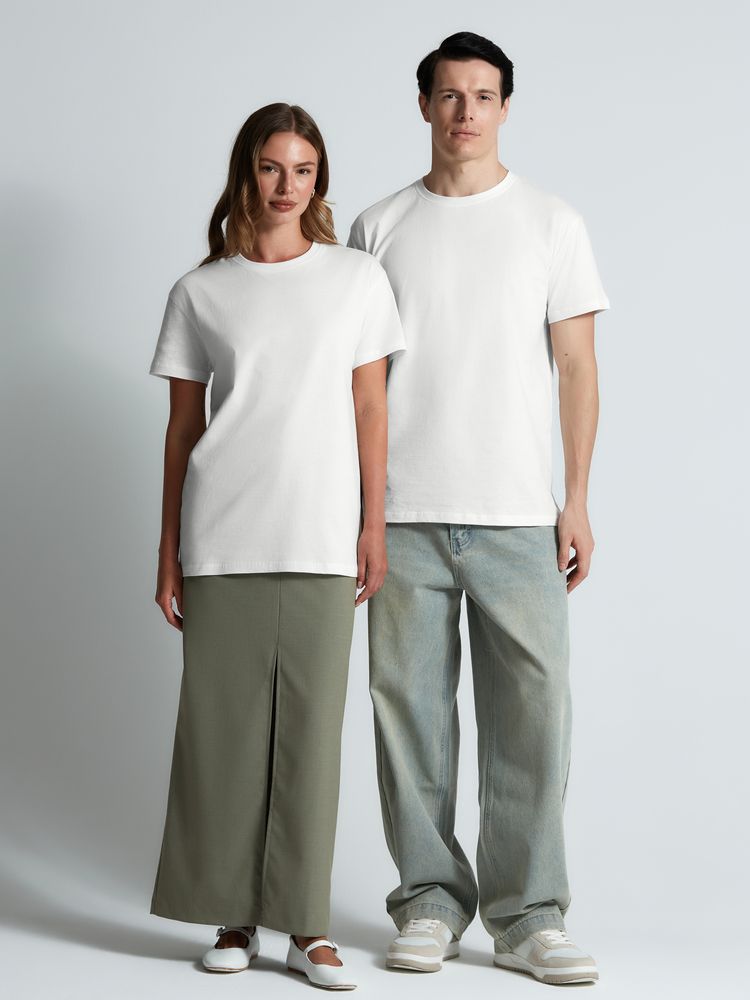 Базовая футболка унисекс прямого силуэта без боковых швов (размеры XS–4XL) или с боковыми швами (размеры 5XL–6XL).