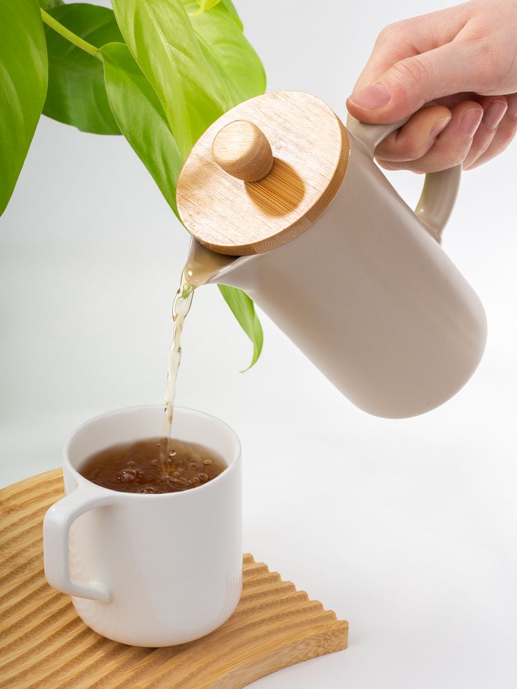 керамика; крышка - бамбук; нержавеющая сталь