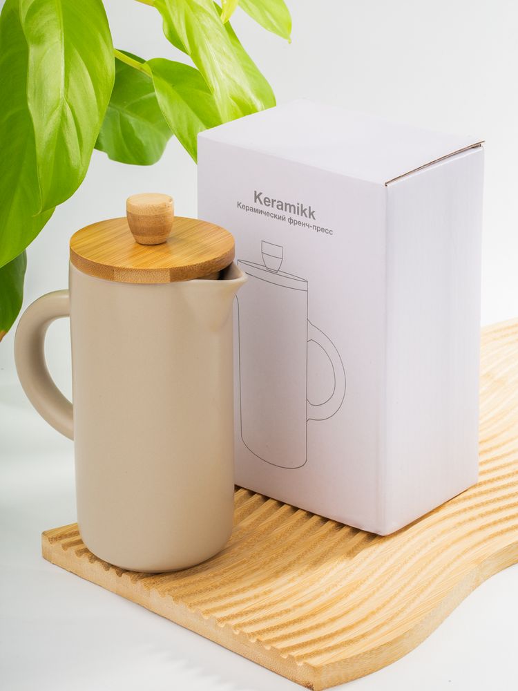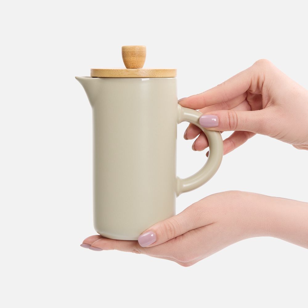 Френч-пресс Keramikk выполнен из керамики, благодаря чему он хорошо сохраняет температуру напитка, не обжигает руки и прост в уходе. Контраст бамбуковой крышки и керамики выглядит действительно интересно и необычно.Емкость 350 мл.