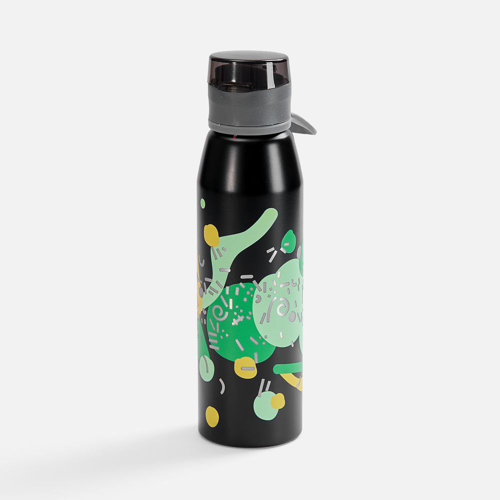 Легкая бутылка для спорта с откидной крышкой и силиконовой петлей для удобной транспортировки.