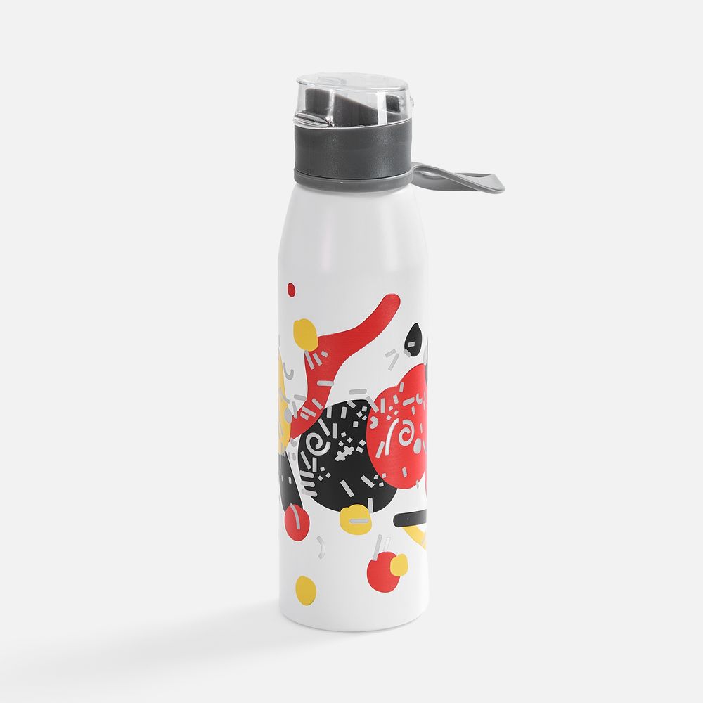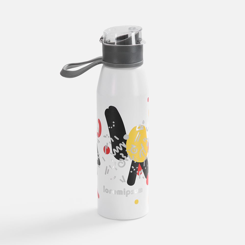 Легкая бутылка для спорта с откидной крышкой и силиконовой петлей для удобной транспортировки.