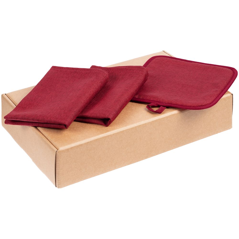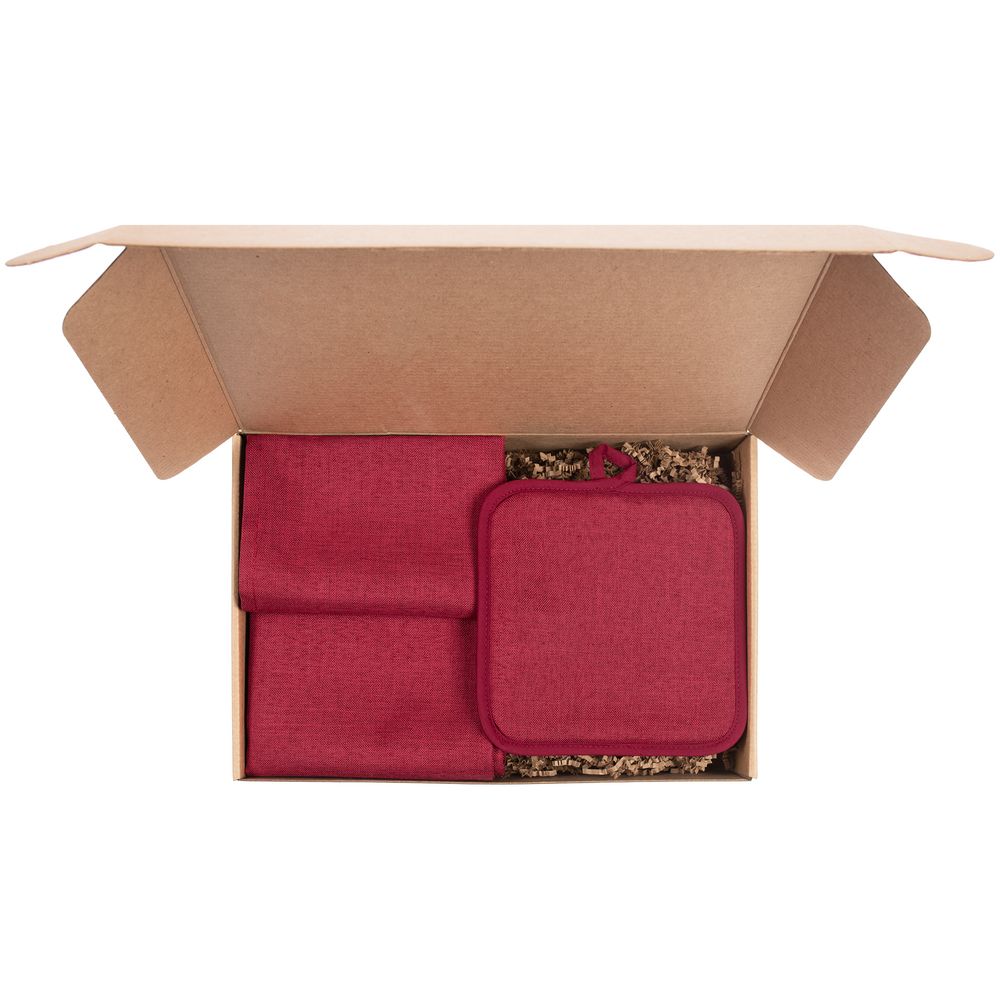 салфетка - полиэстер 100%; прихватка - полиэстер 100%; коробка - микрогофрокартон, плотность 385 г/м²
