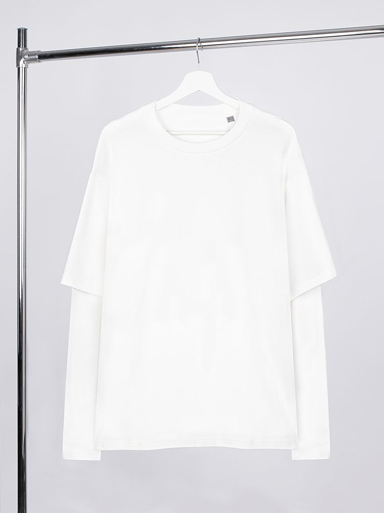 Футболка оверсайз в трендовом исполнении double sleeve (с двойным рукавом) — отличный вариант для создания повседневного образа. Легкая дышащая хлопковая ткань с гладкой трикотажной фактурой приятна к телу, а расслабленный оверсайз силуэт делает футболку Kosmos идеальной для любых жизненных маневров.