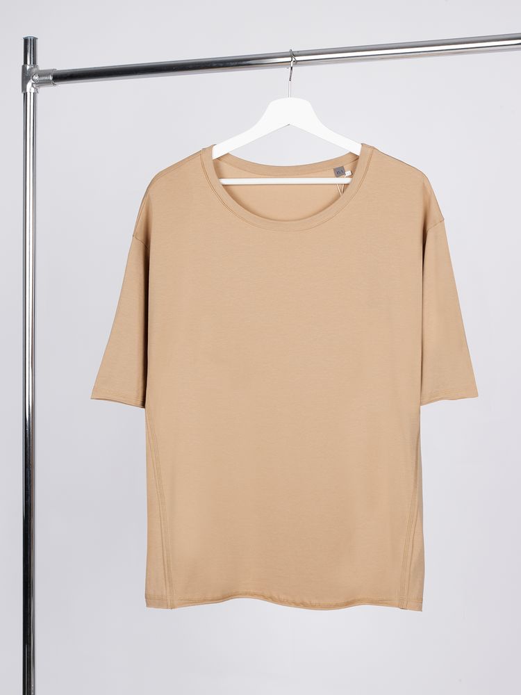 Футболка унисекс свободной посадки Vozduh создана для тех, кто следит за трендами и ценит комфорт. Необработанные края рукавов и низа изделия добавляют ему оригинальности и легкой небрежности, а боковые вставки создают притягательный летящий силуэт.