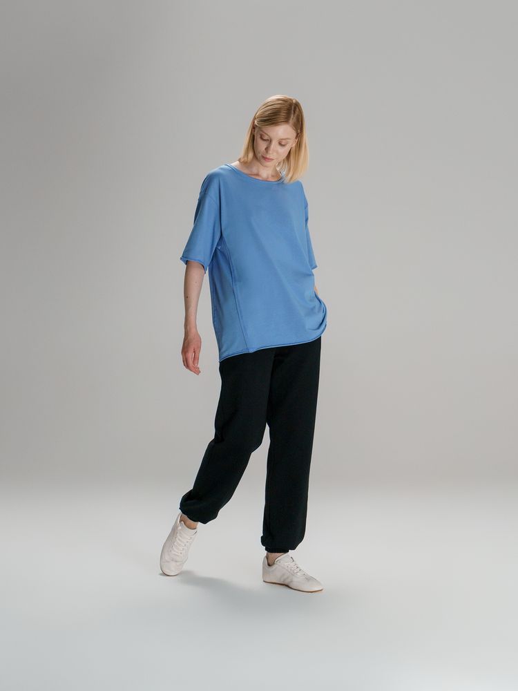 Футболка унисекс свободной посадки Vozduh создана для тех, кто следит за трендами и ценит комфорт. Необработанные края рукавов и низа изделия добавляют ему оригинальности и легкой небрежности, а боковые вставки создают притягательный летящий силуэт.