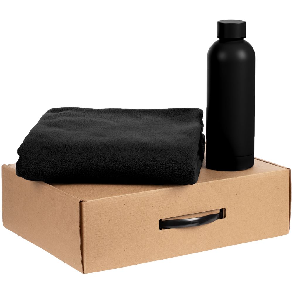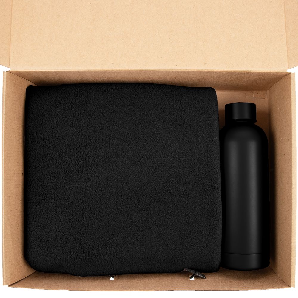 бутылка - металл, пластик; плед - флис; коробка - микрогофрокартон, пластик