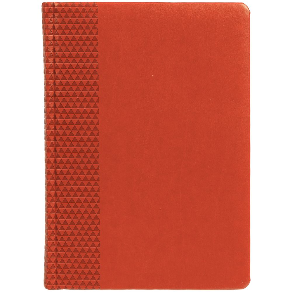 Ежедневник с твердой обложкой, выполнен из материала Waltz, оранжевый ОО, дополнен ляссе в цвет материала.