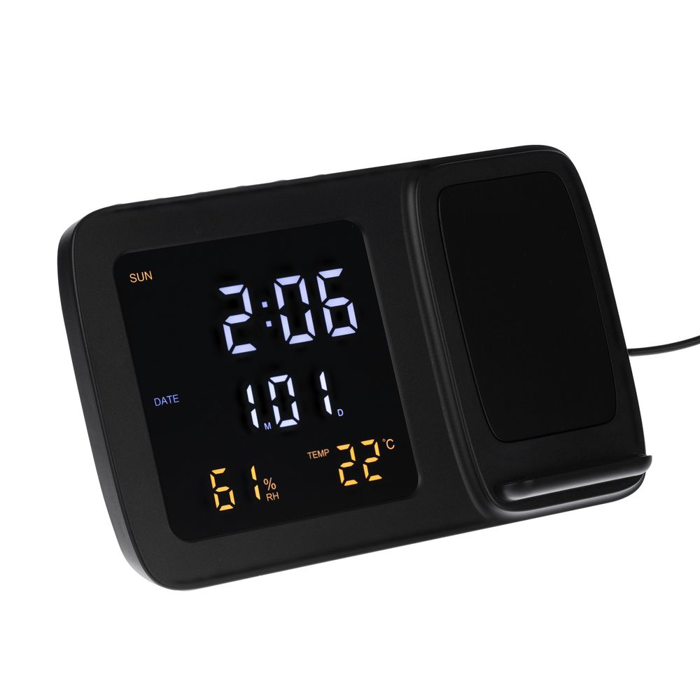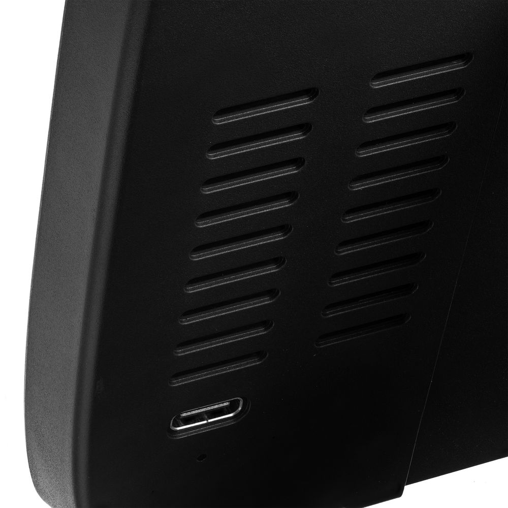 Novem — многофункциональное устройство, которое сочетает в себе функции беспроводной зарядки, настольных часов с будильником, электронного календаря и метеостанции, которая показывает значения температуры и влажности.
