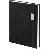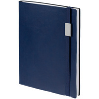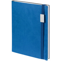 Ежедневник с гибкой обложкой, выполнен из материала Latte, голубой JJ, дополнен резинкой шириной 1 см с металлическим шильдом, капталом и ляссе голубого цвета.