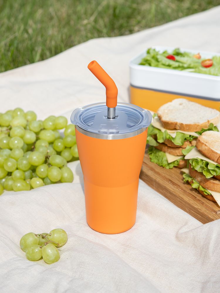 корпус - нержавеющая сталь, 18/8; крышка - пластик; трубочка - нержавеющая сталь, пищевой силикон