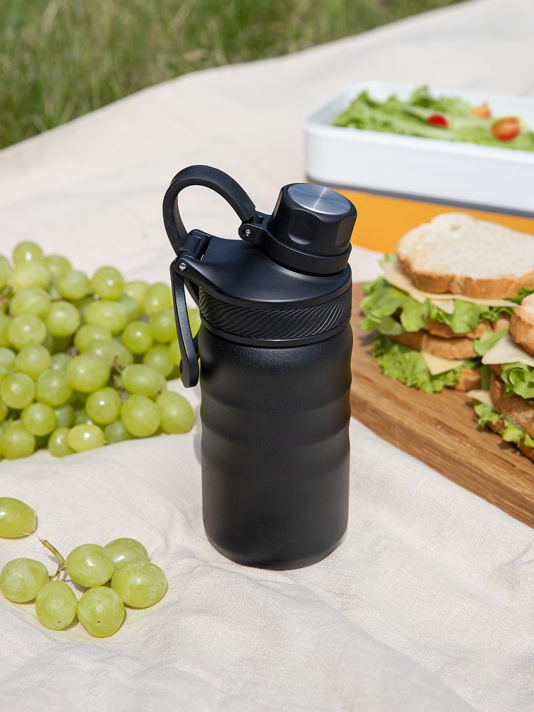- Конструкция с двойными стенками и вакуумной изоляцией сохраняет содержимое холодным до 24 часов, горячим — до 12 часов