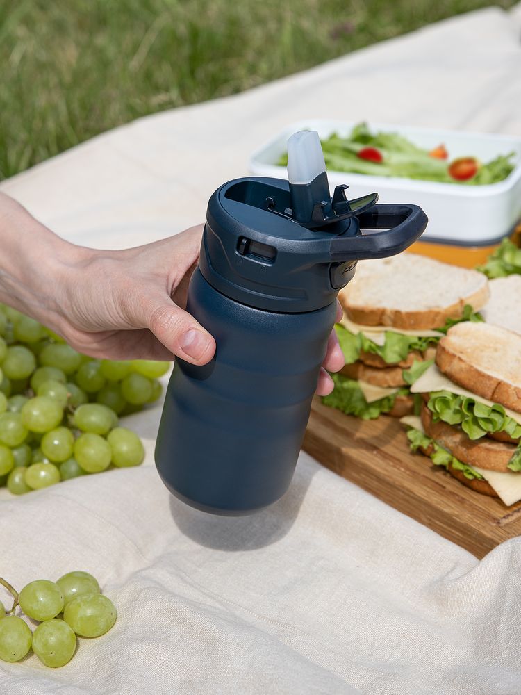 - Конструкция с двойными стенками и вакуумной изоляцией сохраняет содержимое холодным до 24 часов, горячим — до 12 часов