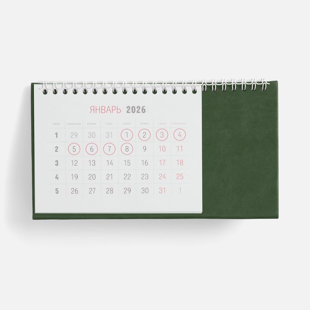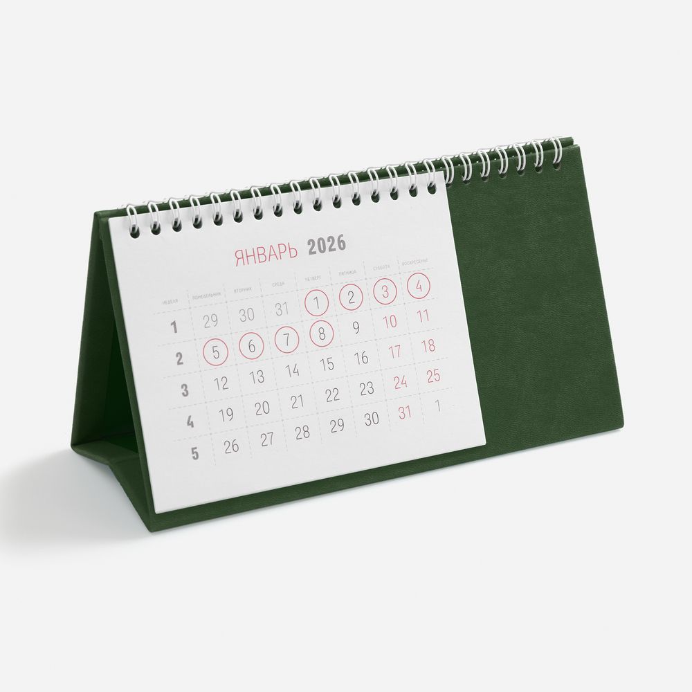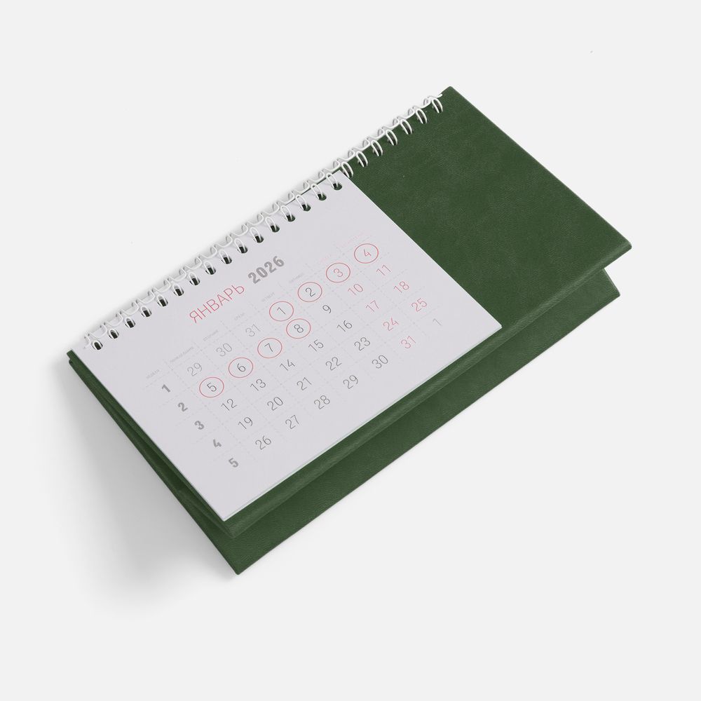 Настольный, перекидной календарь-домик выполнен из материала Latte, зеленый FF.