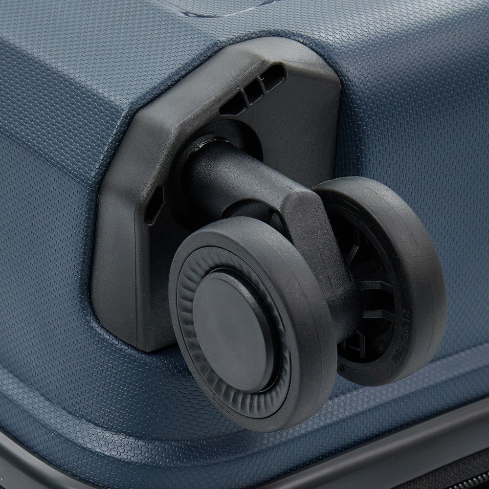 - Блок крепления колеса встроен в корпус чемодана, что обеспечивает лучшую устойчивость к внешнему воздействию