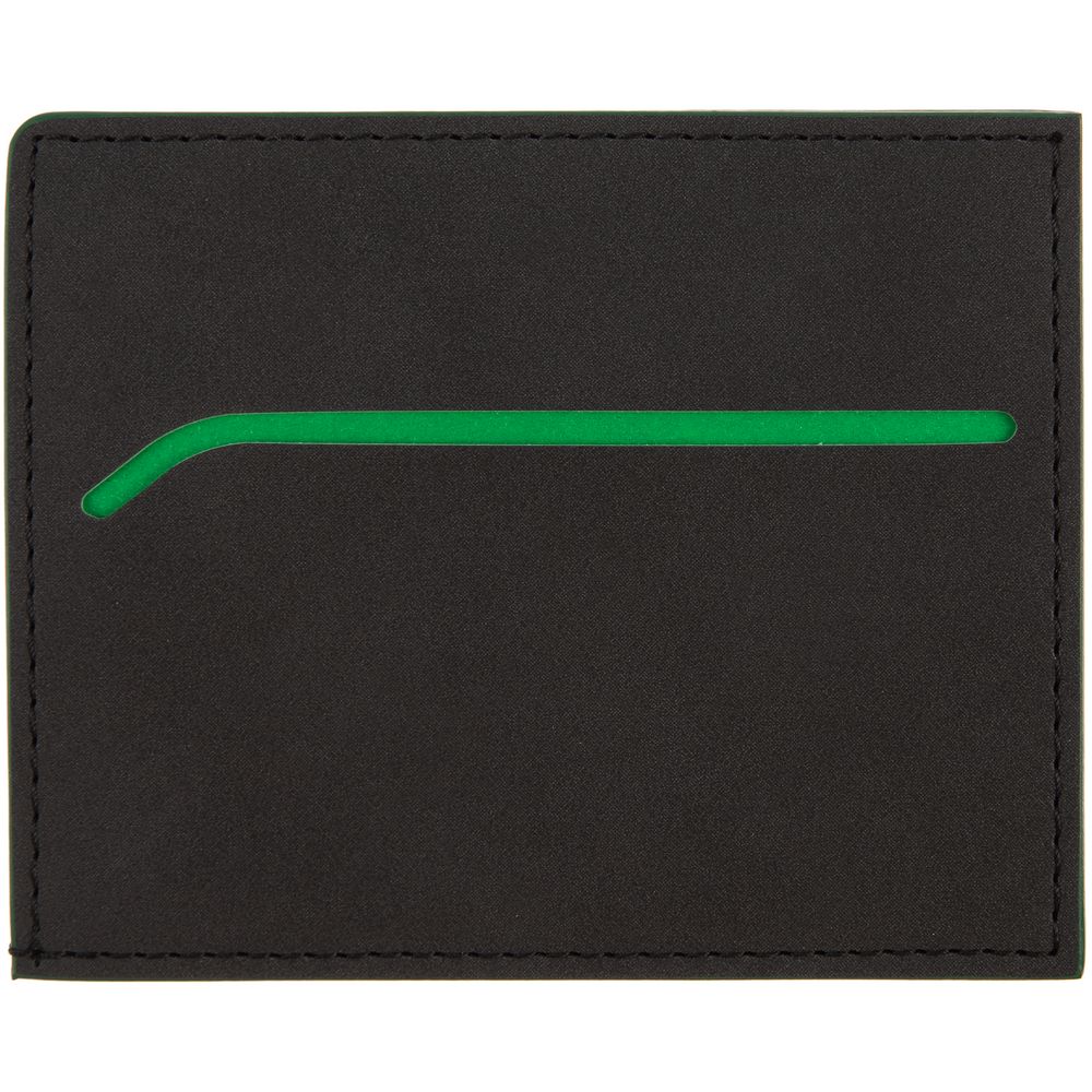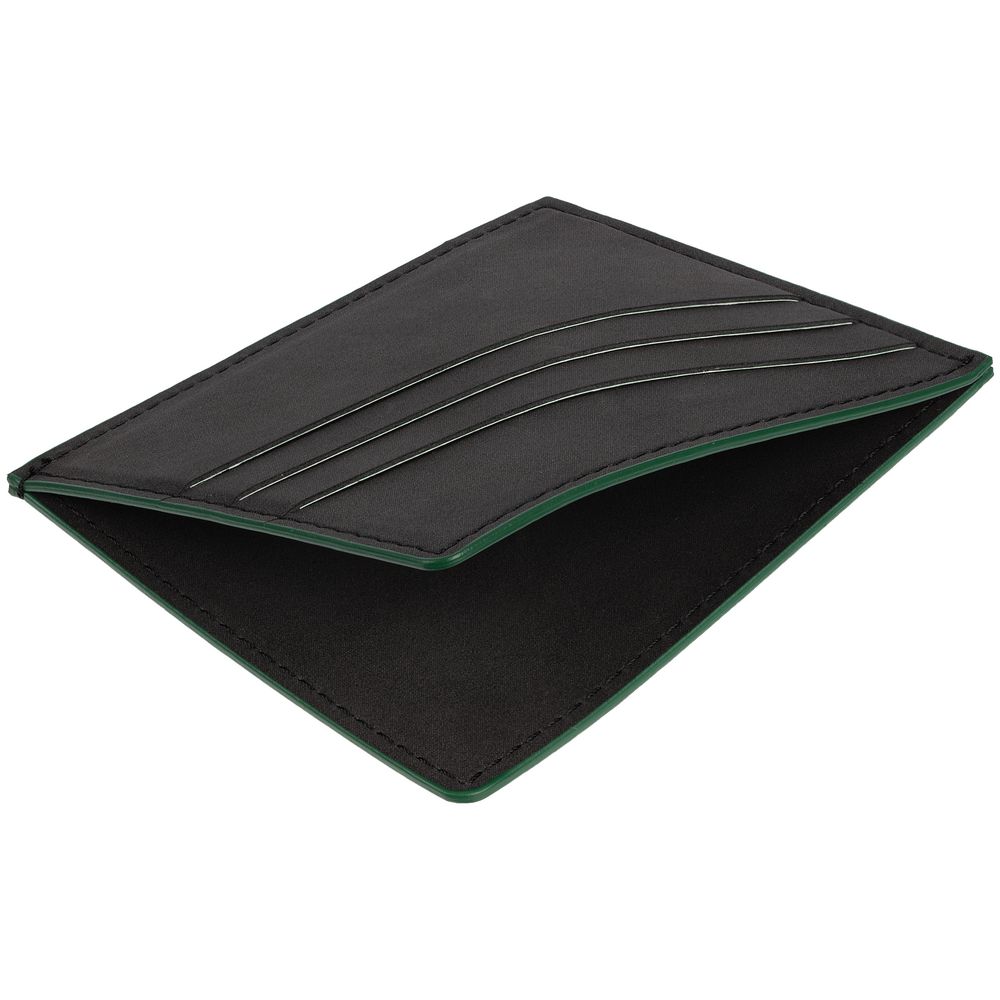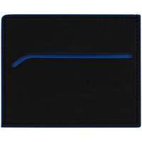 Чехол выполнен из материала Soft Touch Pearl, черный АА, дополнен окрашенным срезом края и внутренним карманом из цветного картона. Имеет 4 отделения для кредитных карт и 1 отделение для купюр.