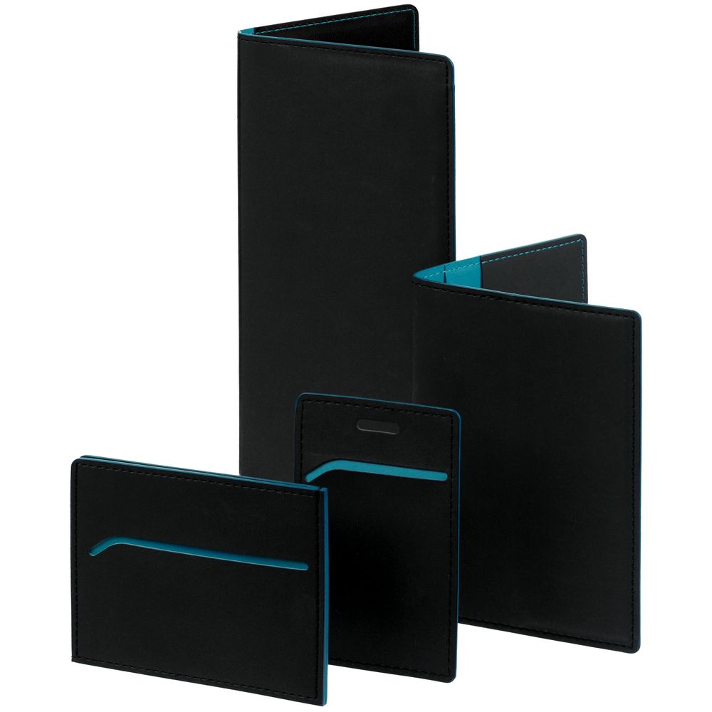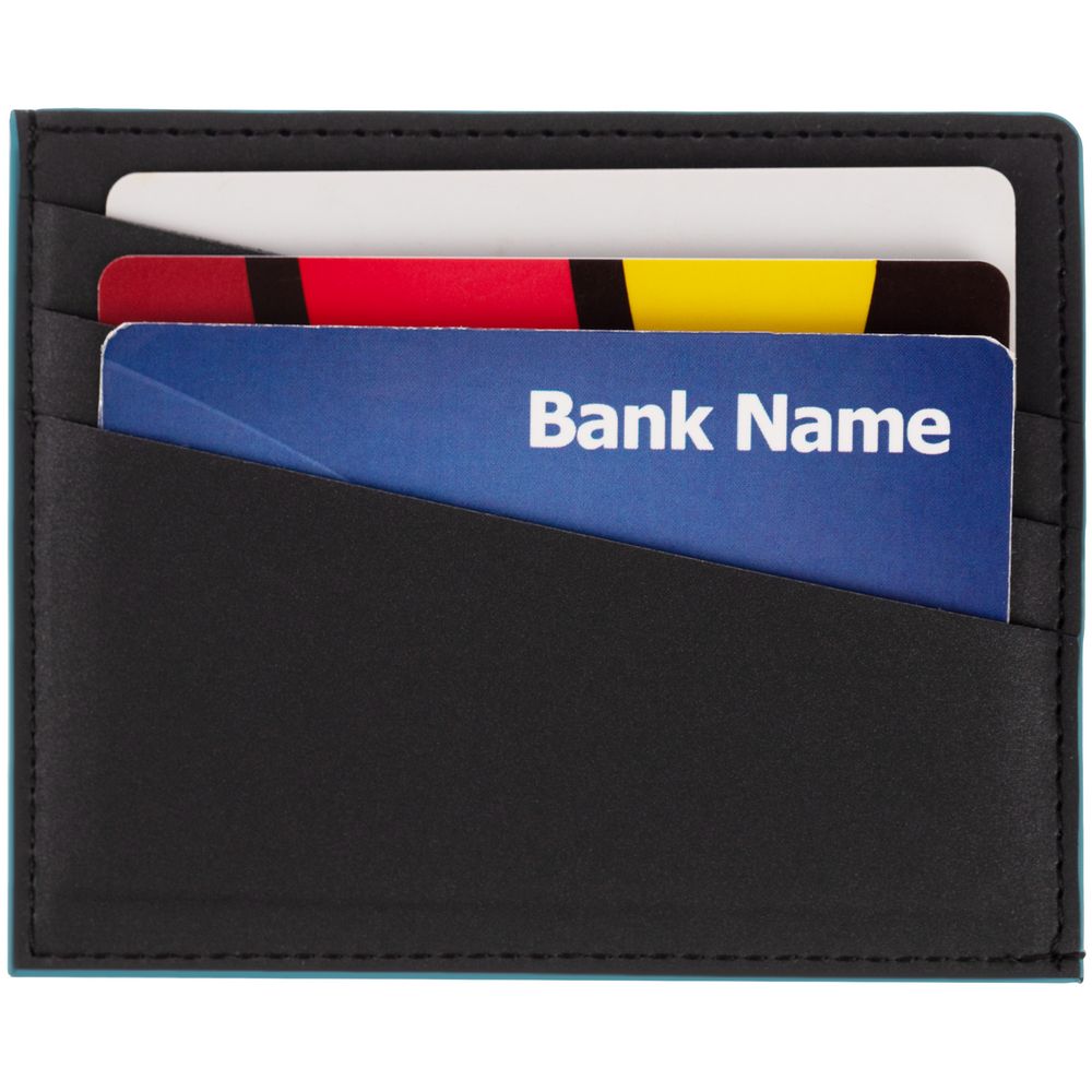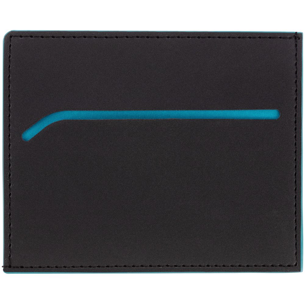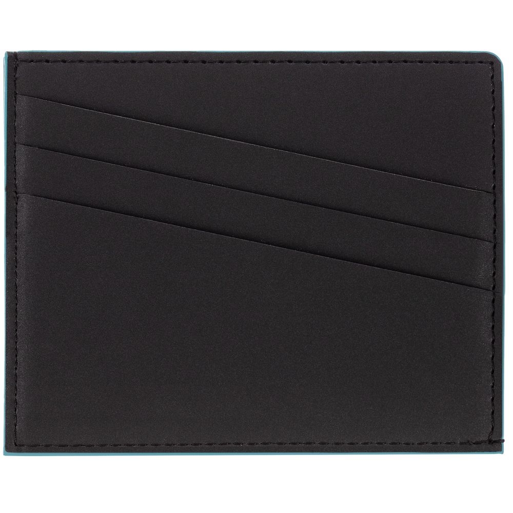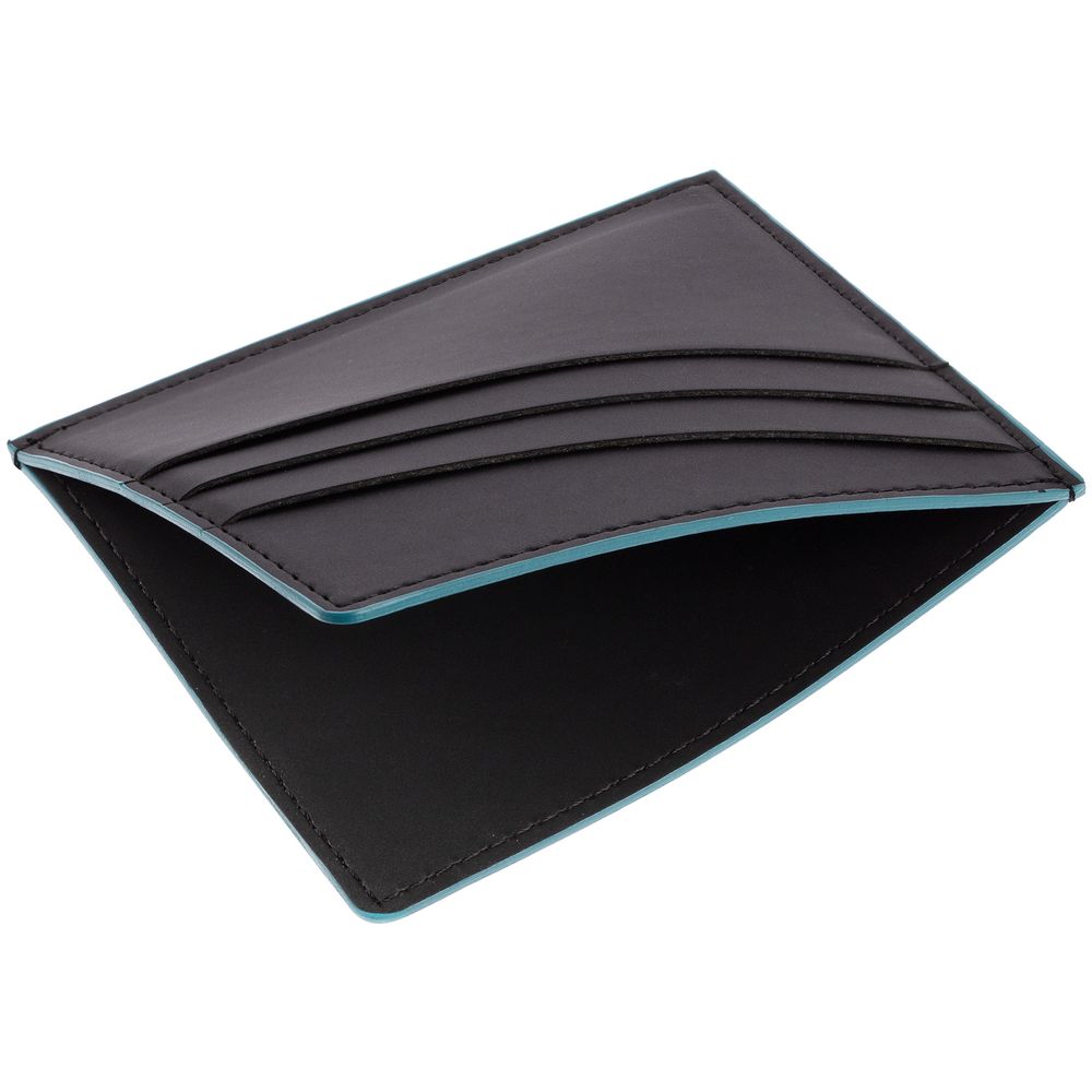Чехол выполнен из материала Soft Touch Pearl, черный АА, дополнен окрашенным срезом края и внутренним карманом из цветного картона. Имеет 4 отделения для кредитных карт и 1 отделение для купюр.