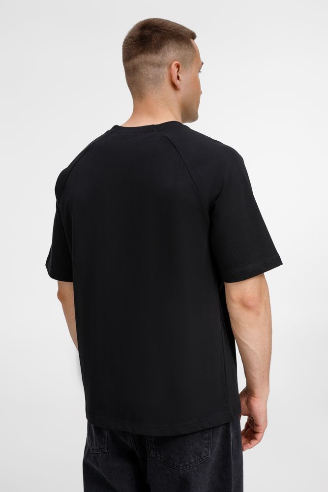 Футболка унисекс свободного кроя с круглым воротом.