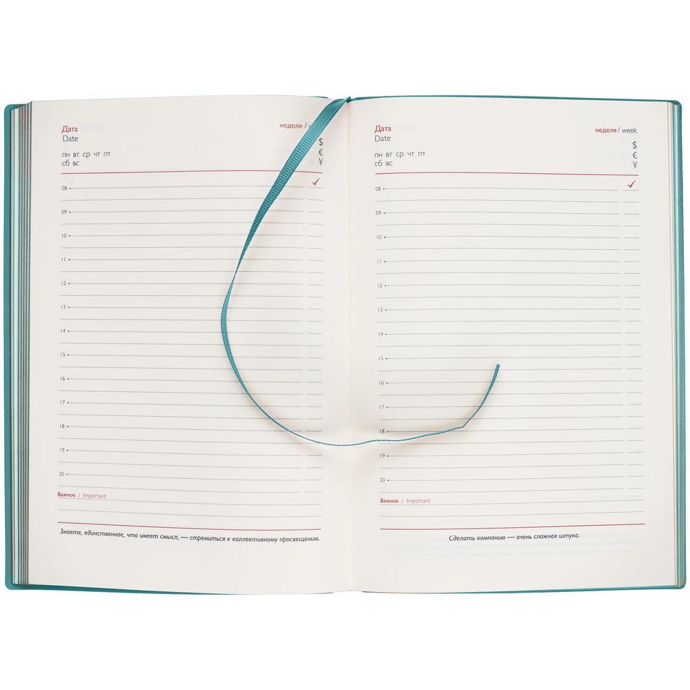 Ежедневник с гибкой обложкой из искусственной кожи Vacheto, дополнен капталом и ляссе в цвет ежедневника.