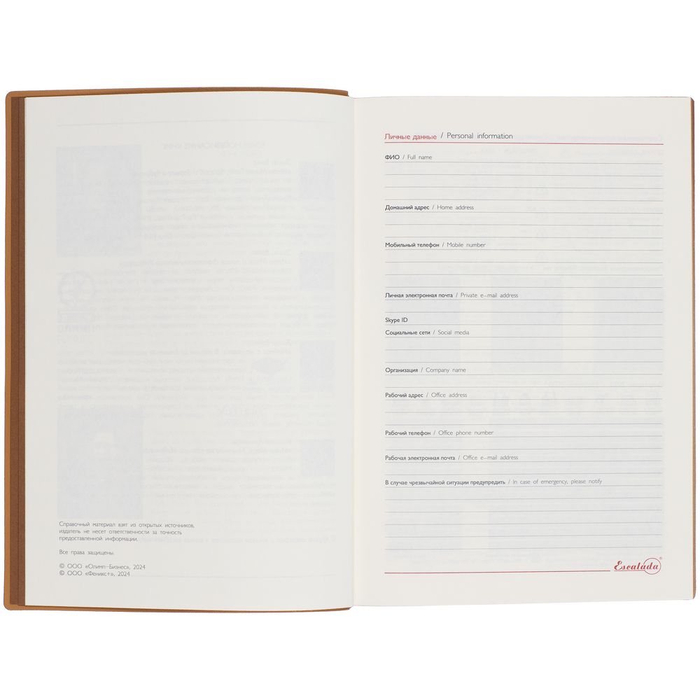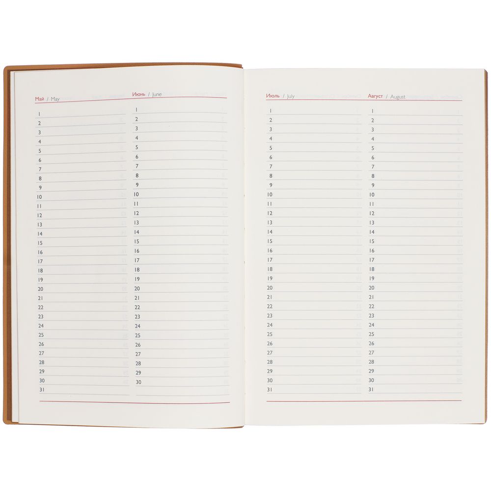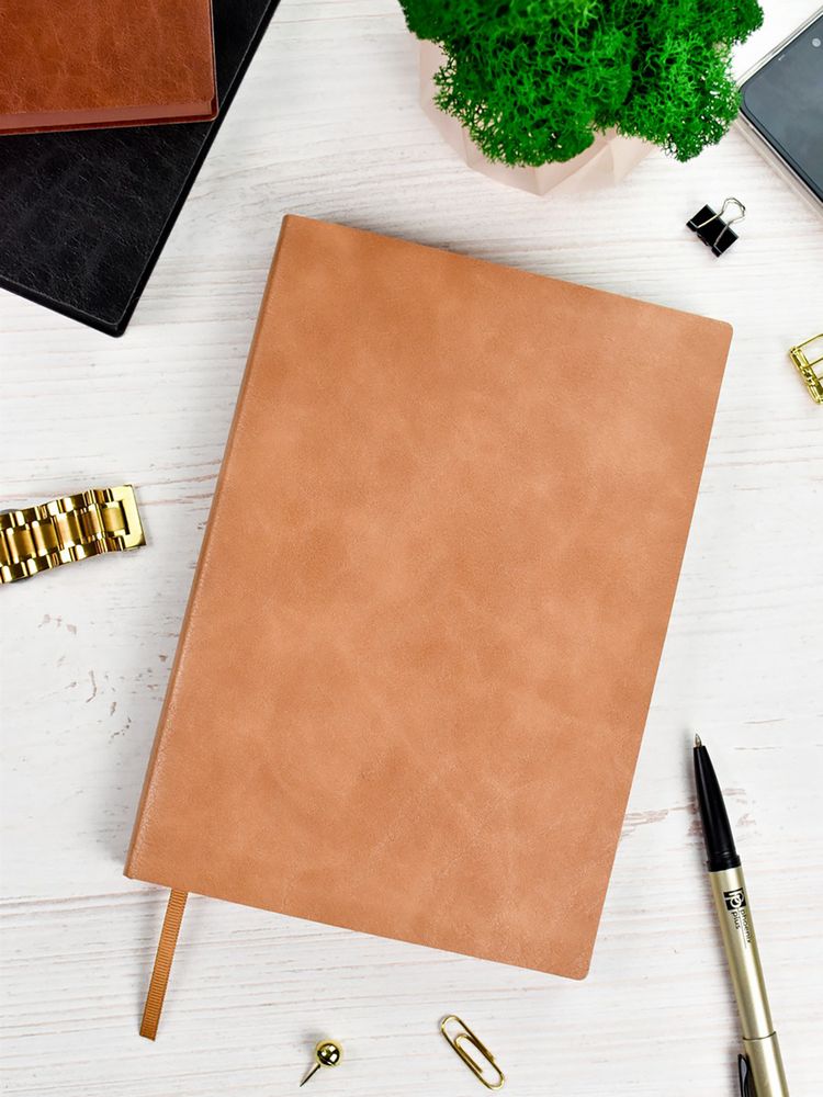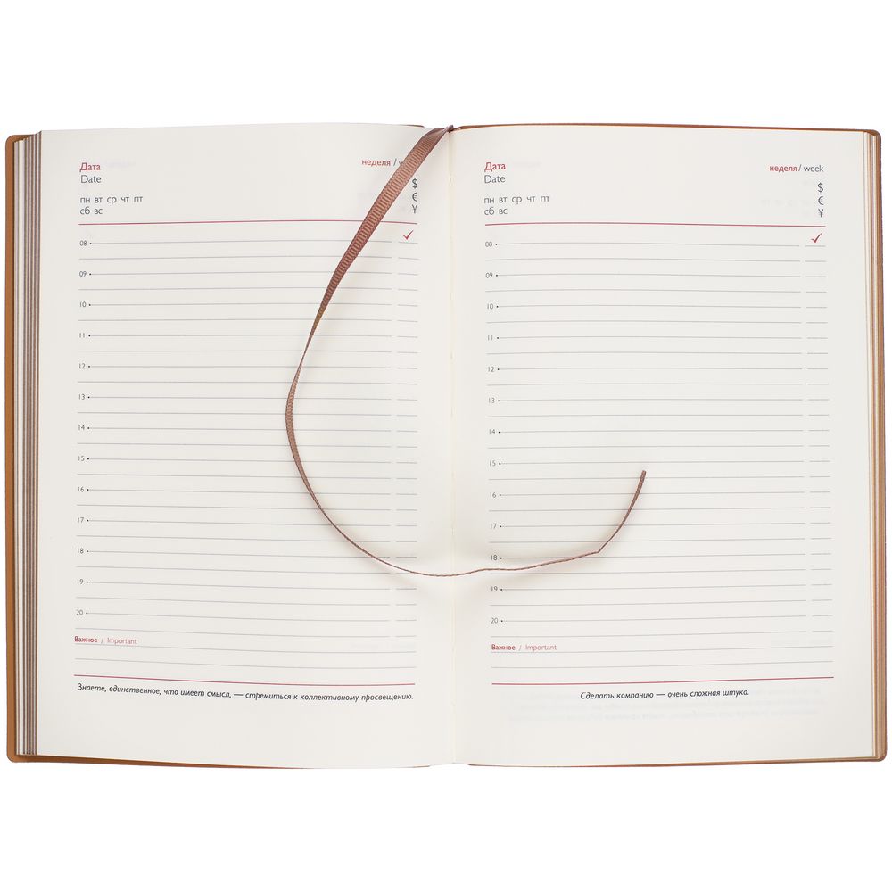 Ежедневник с гибкой обложкой из искусственной кожи Vacheto, дополнен капталом и ляссе в цвет ежедневника.