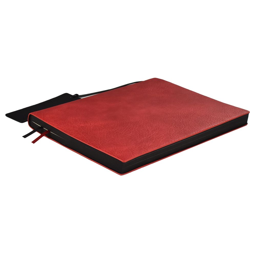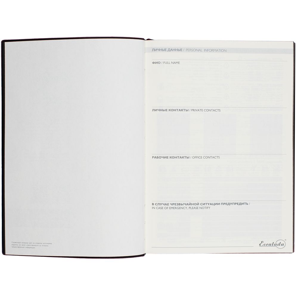 Ежедневник с гибкой обложкой и закладкой из искусственной кожи, дополнен капталом и двойным ляссе.
