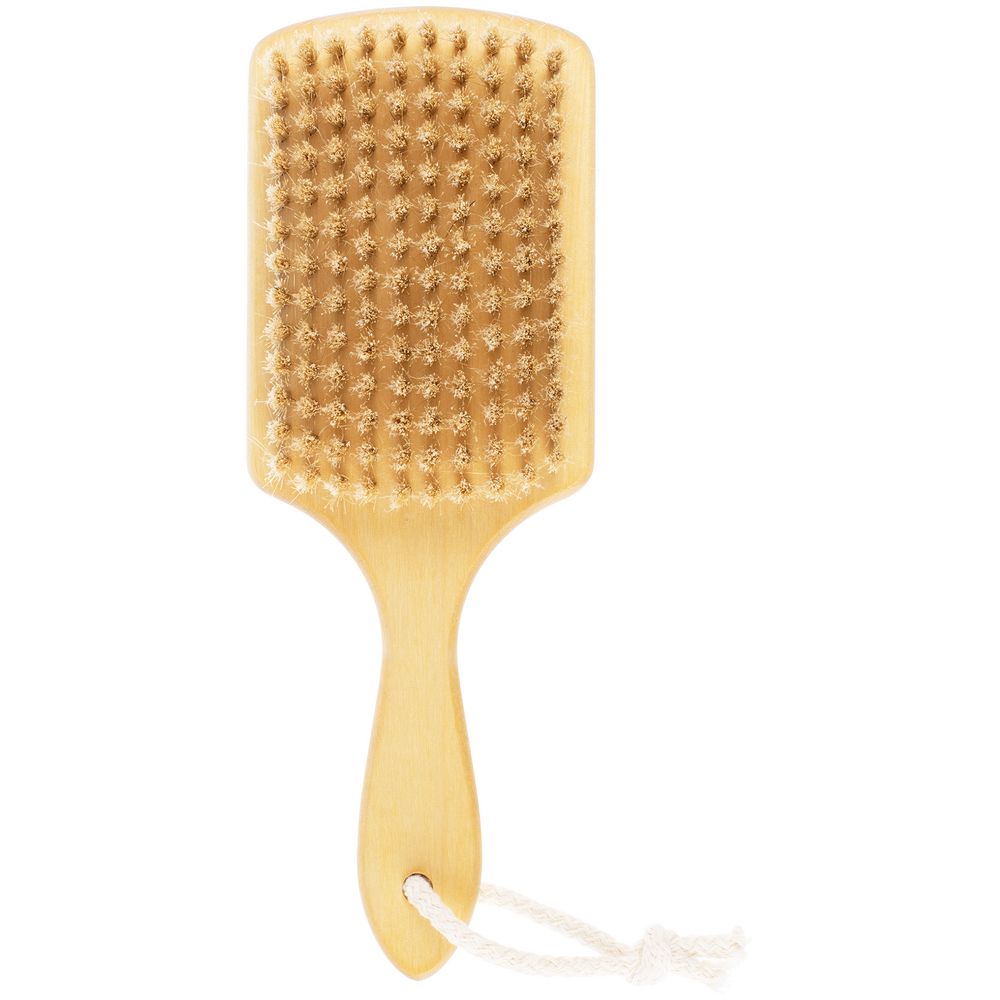 Щетка изготовлена из экологичных материалов. Натуральная щетина средней жесткости защитит кожу от мелких повреждений, подарив только самые приятные ощущения.