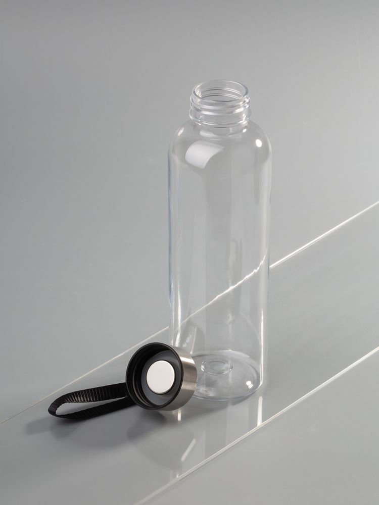 Бутылка для воды классической формы с удобной петлей для переноски и широкими возможностями по нанесению: помимо круговой УФ-печати доступны гравировка крышки или полноцветный трансфер на ремешке.