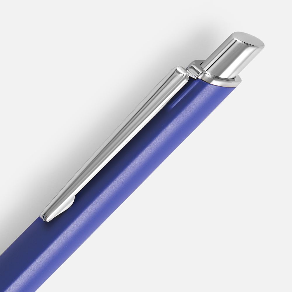 Металлическая ручка с матовым корпусом и хромированными деталями.