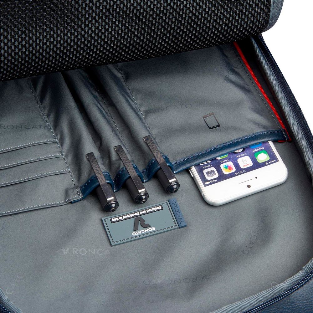 - Отделение-органайзер со слотами для кредиток, карманом для телефона и сетчатым карманом на молнии