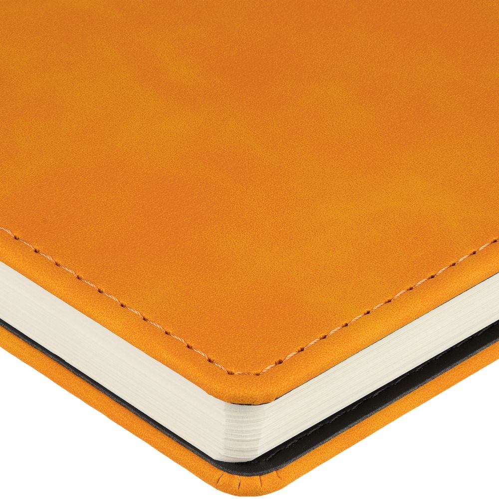Ежедневник с блоком на пружине в твердой обложке, выполнен из материалов Nubuk Touch, оранжевый ОО и Soft Touch, черный AA.