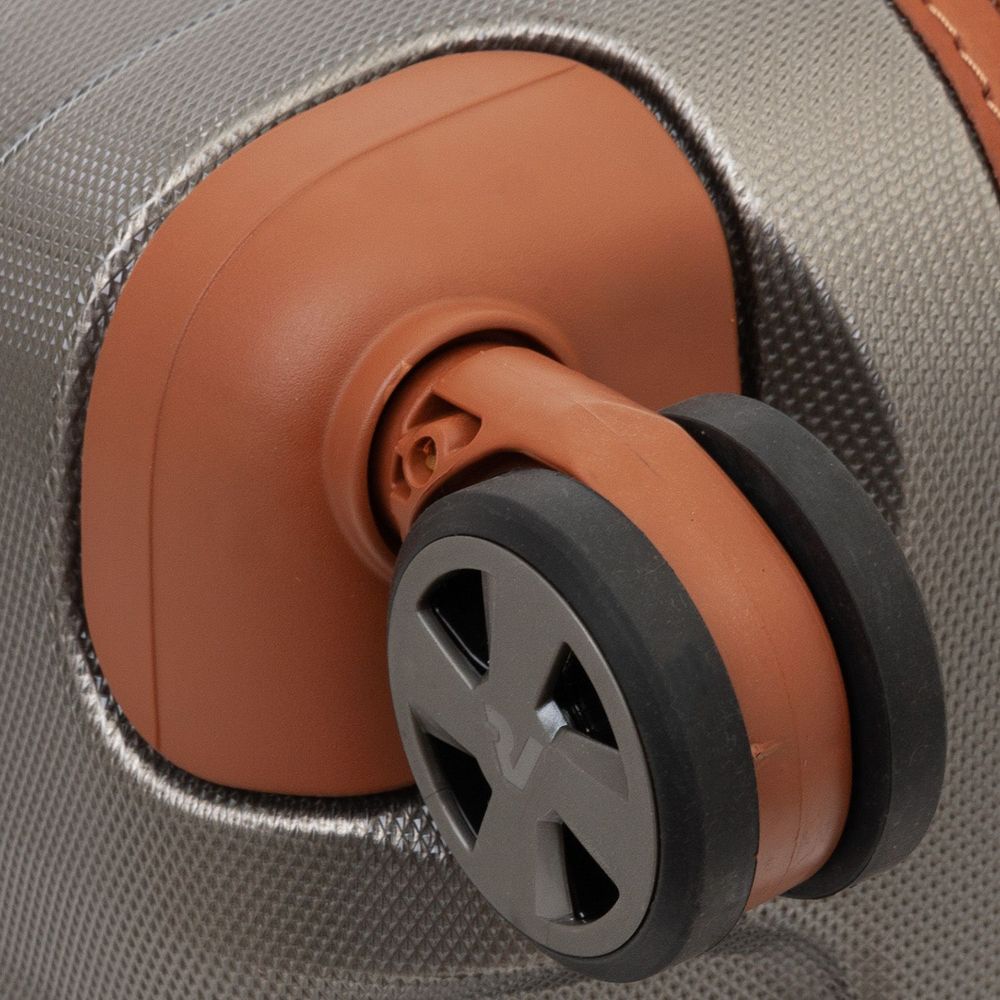 Наружные и внутренние элементы — ручки, фурнитура, обрамление молний и адресная бирка — выполнены из натуральной кожи, благодаря чему чемодан E-Lite приобретает по-настоящему изысканный вид.