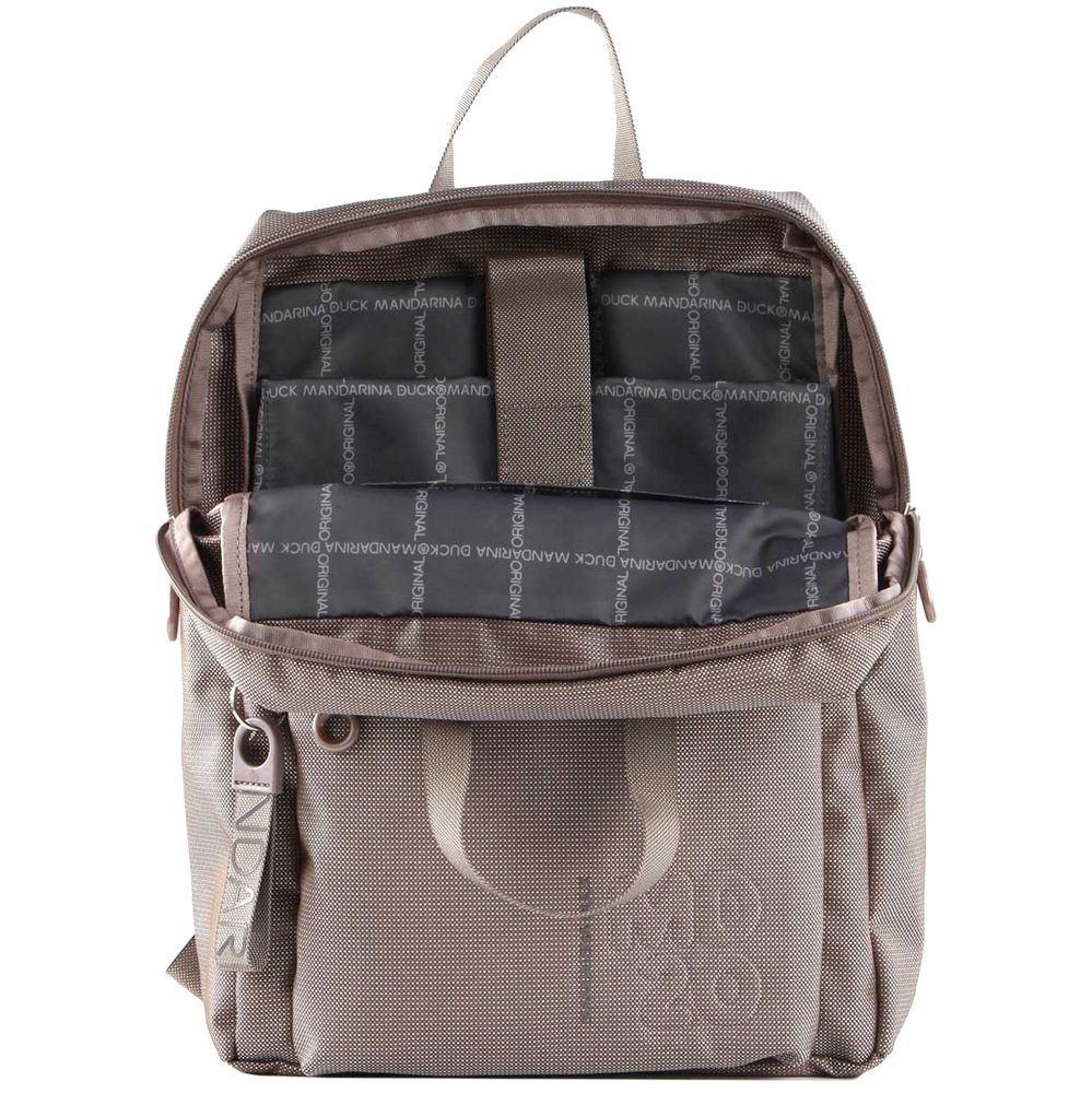 Завершающие штрихи в дизайн рюкзака вносят оригинальная фурнитура и крупный фирменный логотип.