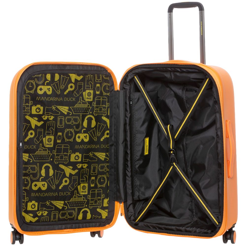 Коллекция чемоданов из поликарбоната Logoduck+ стала настоящим бестселлером: обтекаемые изящные формы, колеса в тон корпуса, крупный логотип бренда, подкладка с принтом и яркие цвета делают их уникальными в своем роде. Упаковочные ремни, разделитель на молнии и дополнительный карман для мелочей помогут аккуратно упаковать все необходимые вещи для поездки на 1-2 недели.