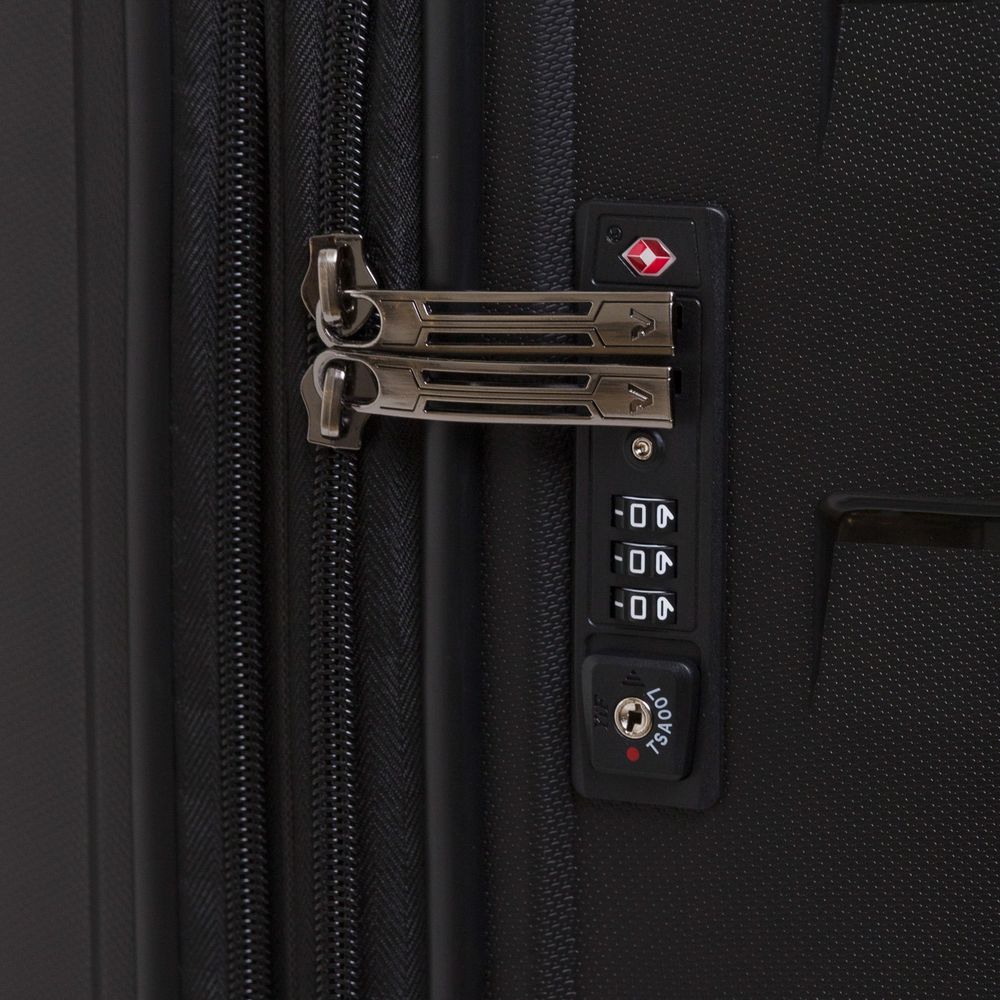 - Чемодан с 2 отделениями: одно из них с фиксирующими ремнями и сетчатой шторкой на молнии, второе — с разделителем на молнии