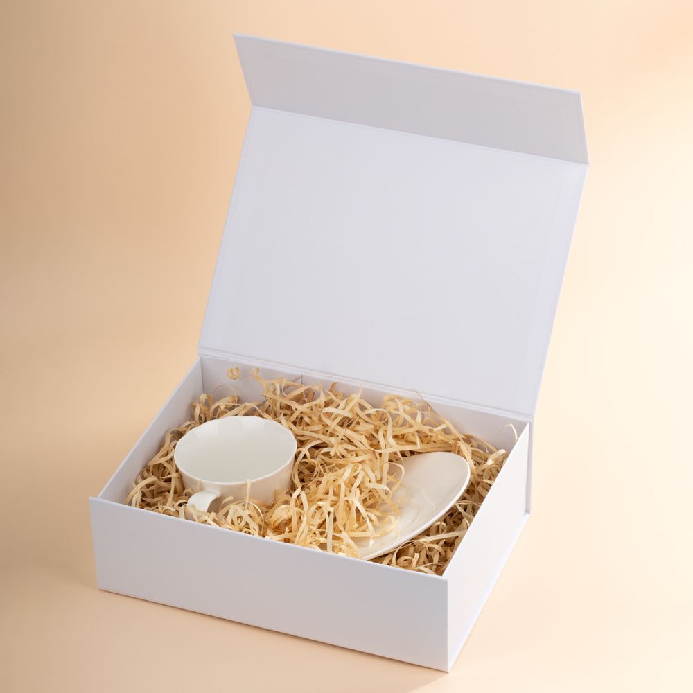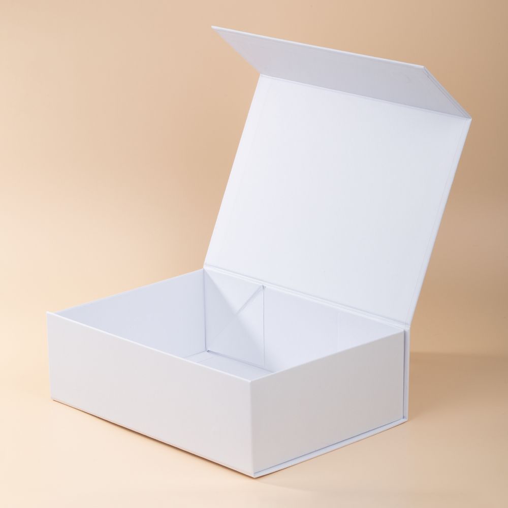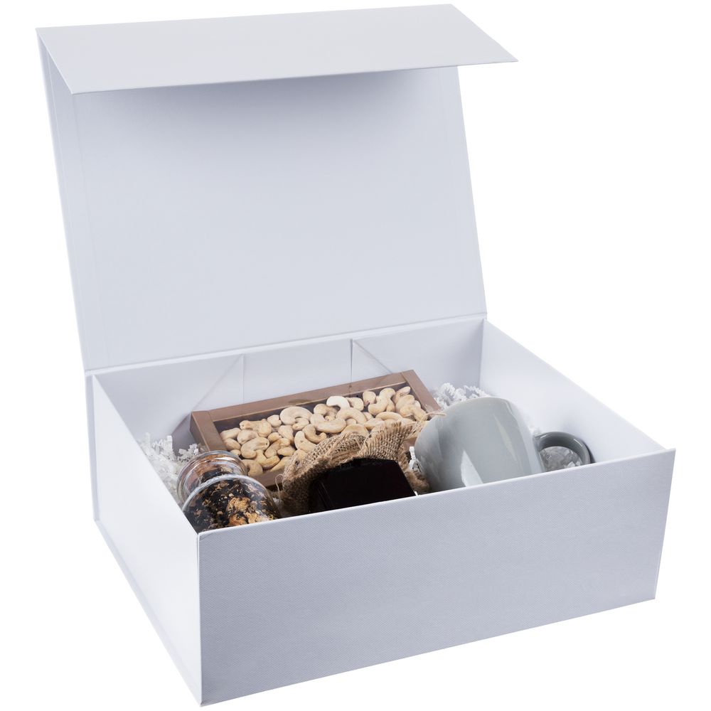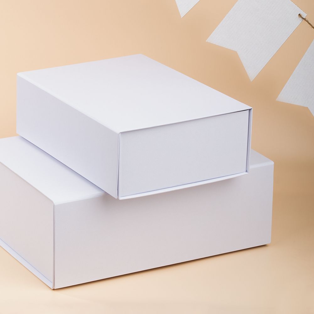 Коробка из переплетного картона, кашированного тисненой тонированной в массе бумагой, с крышкой на магните.
